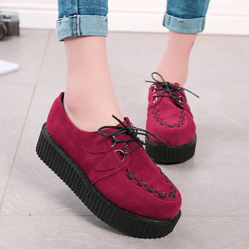 Женская обувь, криперы, женская обувь на плоской платформе, Женская замшевая кожаная обувь, женская повседневная обувь на шнуровке, женская обувь