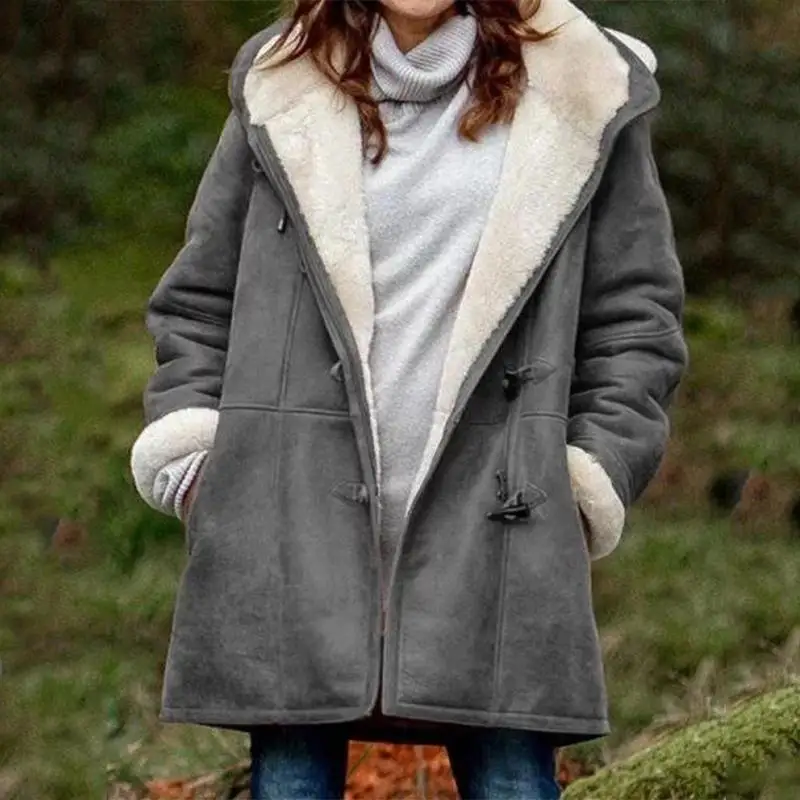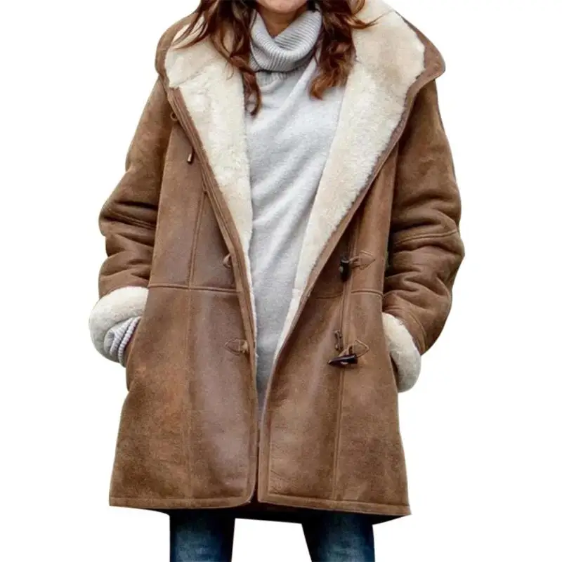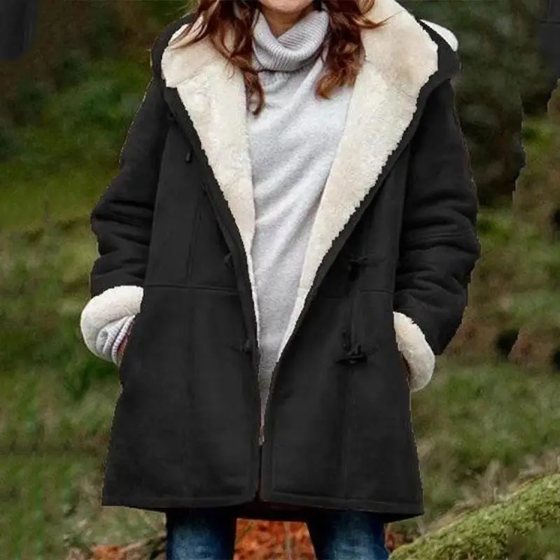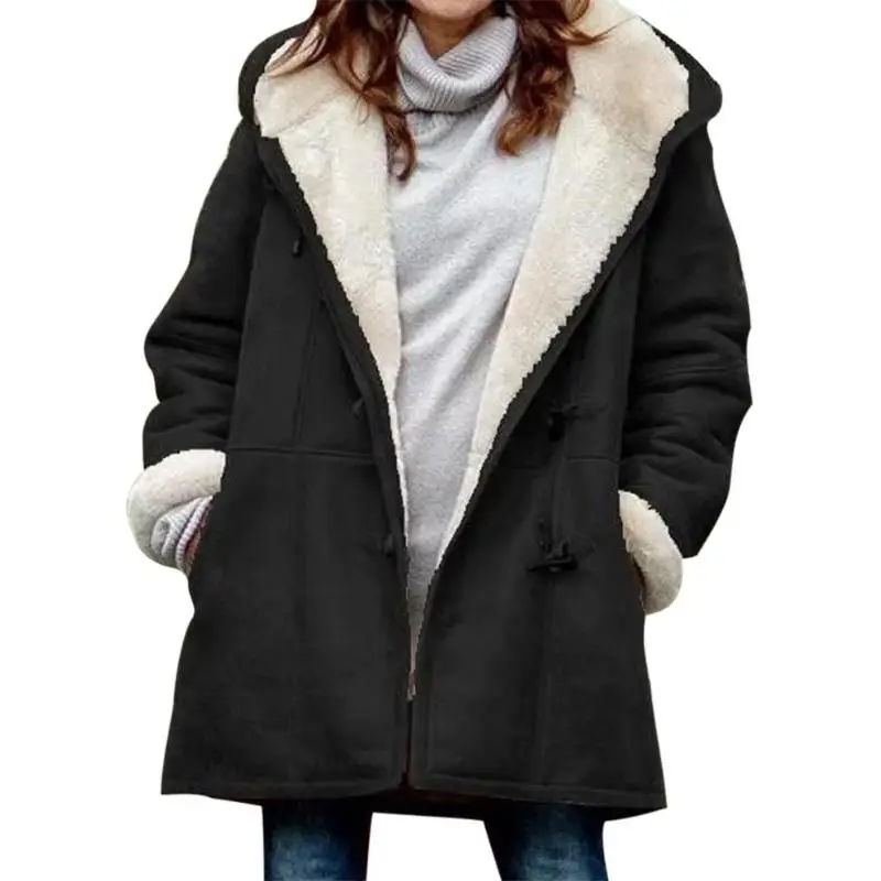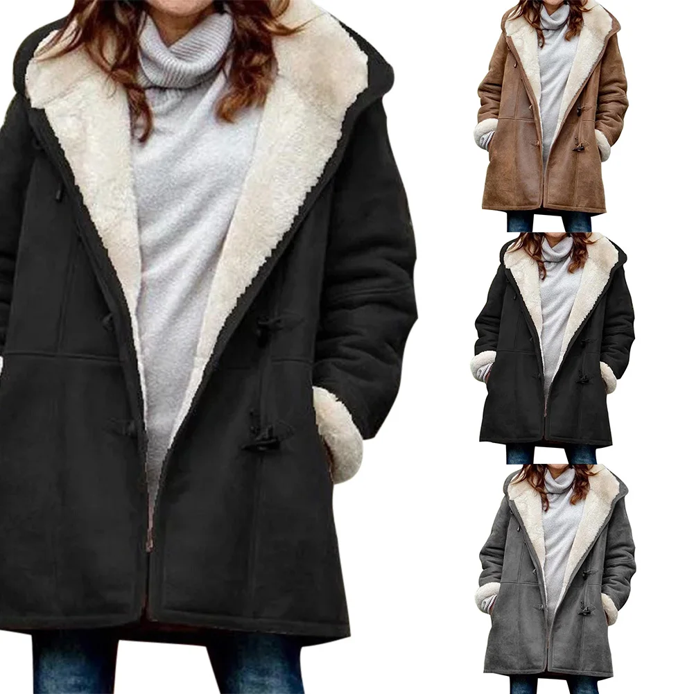 Однотонное свободное флисовое пальто средней длины с капюшоном, женский зимний Кардиган на пуговицах с длинным рукавом, Повседневная Верхняя одежда с капюшоном