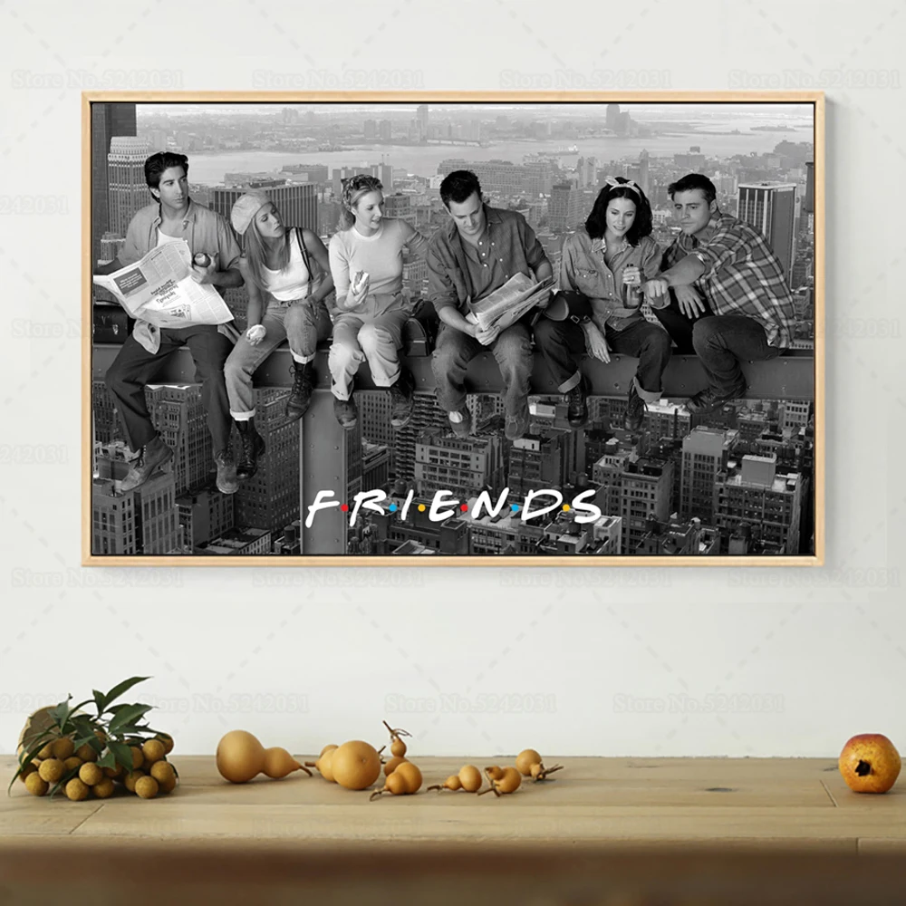 Постер с изображением друзей на небоскребе Нью-Йорка, черный, белый, винтажный постер, ТВ-шоу, Картина на холсте с изображением друзей для гостиной
