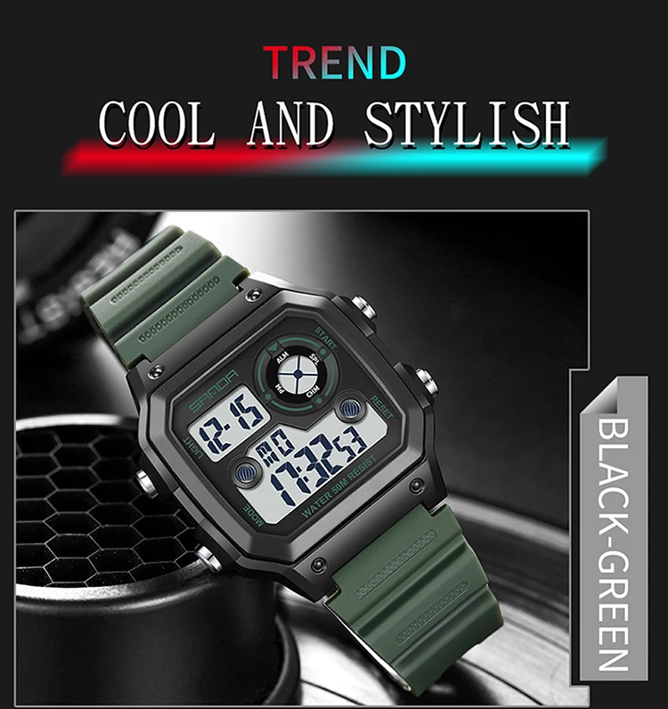 Часы наручные SANDA Мужские Цифровые, водонепроницаемые до 50 м, в ...