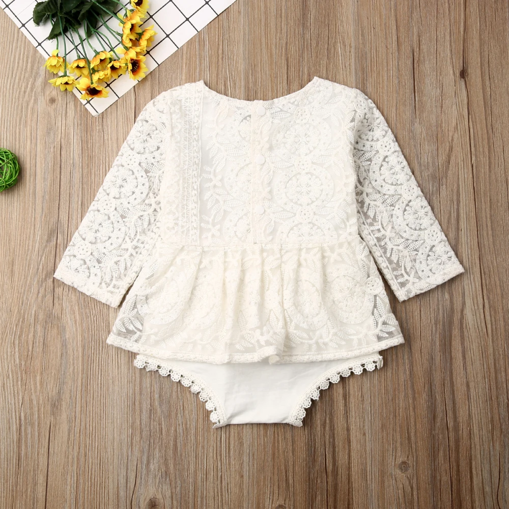 2020 Новинка Одежда для новорожденных девочек с длиннымкоротким рукавом кружевной комбинезон с оборками платье-пачка комбинезон простые хлопковые наряды 0-24 месяцев