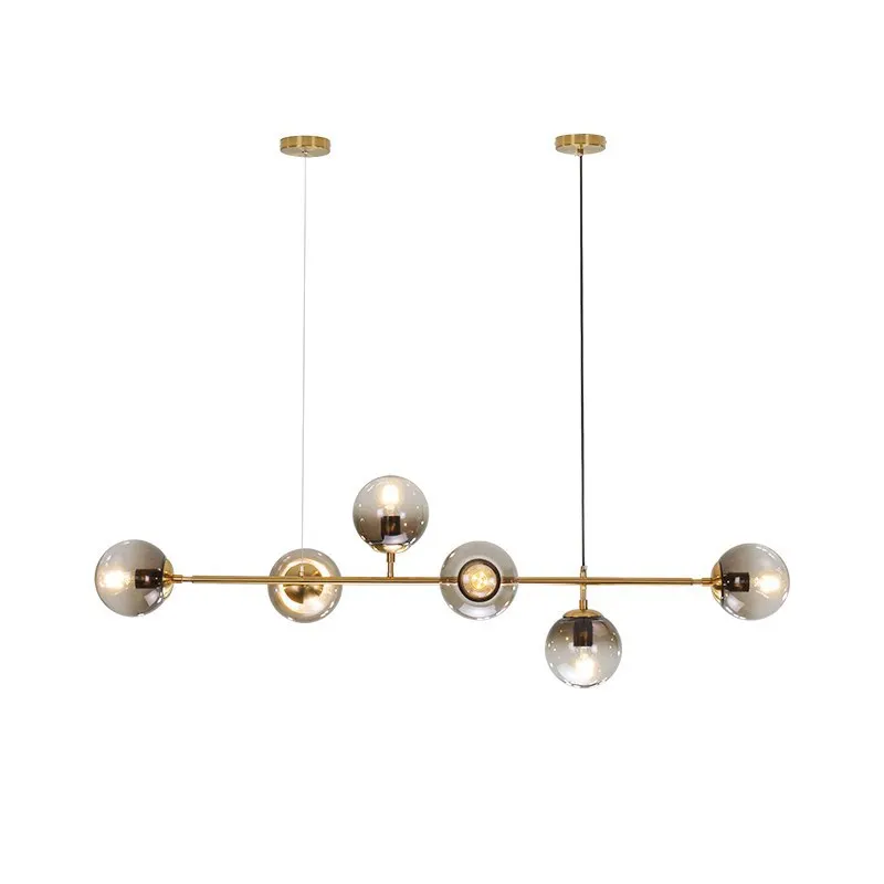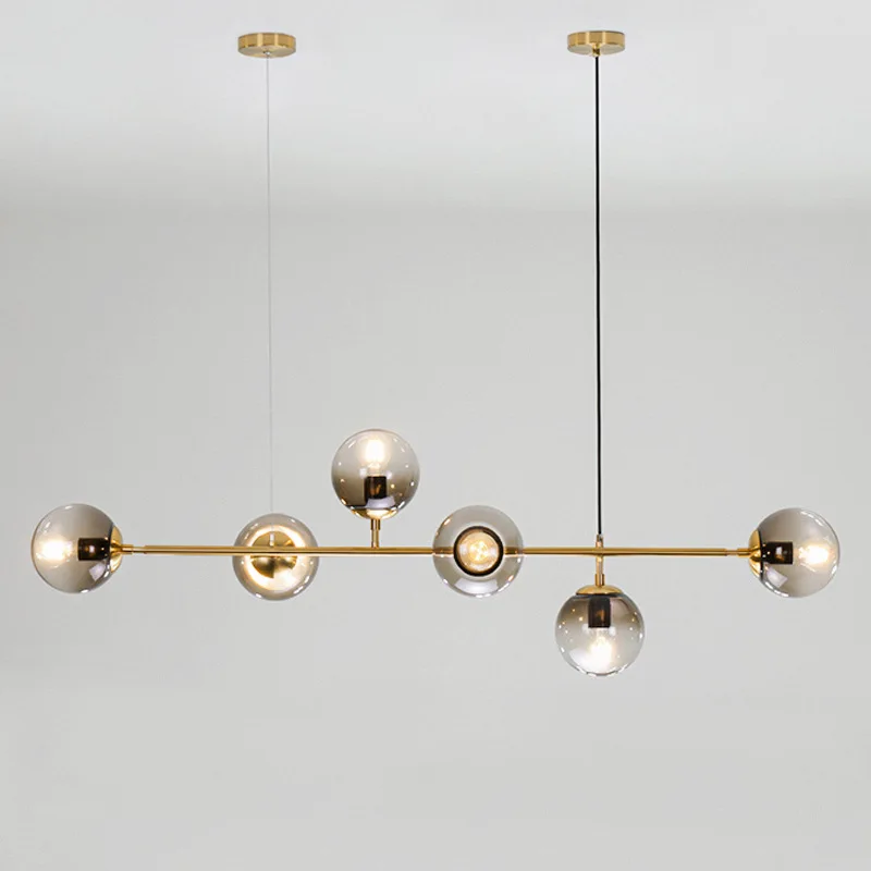 Современный линейный светильник длиной 120 см, 6 ламп, 15 см, дымчато-серый стеклянный шар, подвесной светильник, Swag, подвесные светильники для столовой