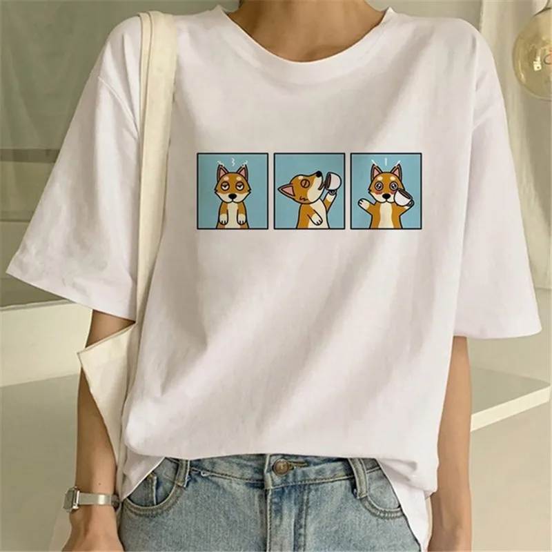 Футболка Шиба-ину, забавная футболка, корейский топ с графическим п...