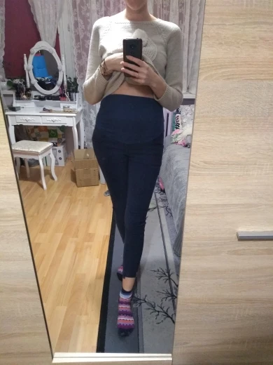 Супер! 159 см 27 недель беременности moglam принимает трош меньшего размера, потому что маленькие ноги на ваших ногах, но после стирки и сушки, потому что может zbiec. Есть два передних кармана и два с таким количеством. Время доставки составляет менее 2 недель, очень быстро до bylam zdziwiona.
