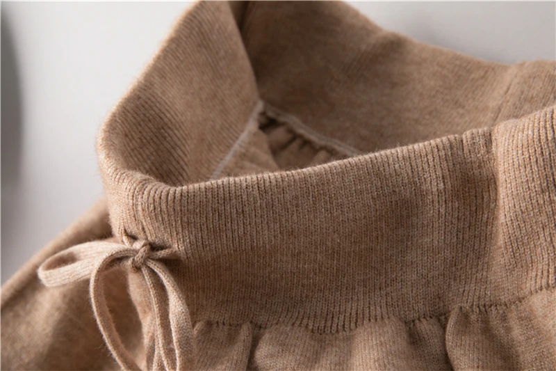 Женский трикотажный костюм-свитер с высоким воротником и брюки