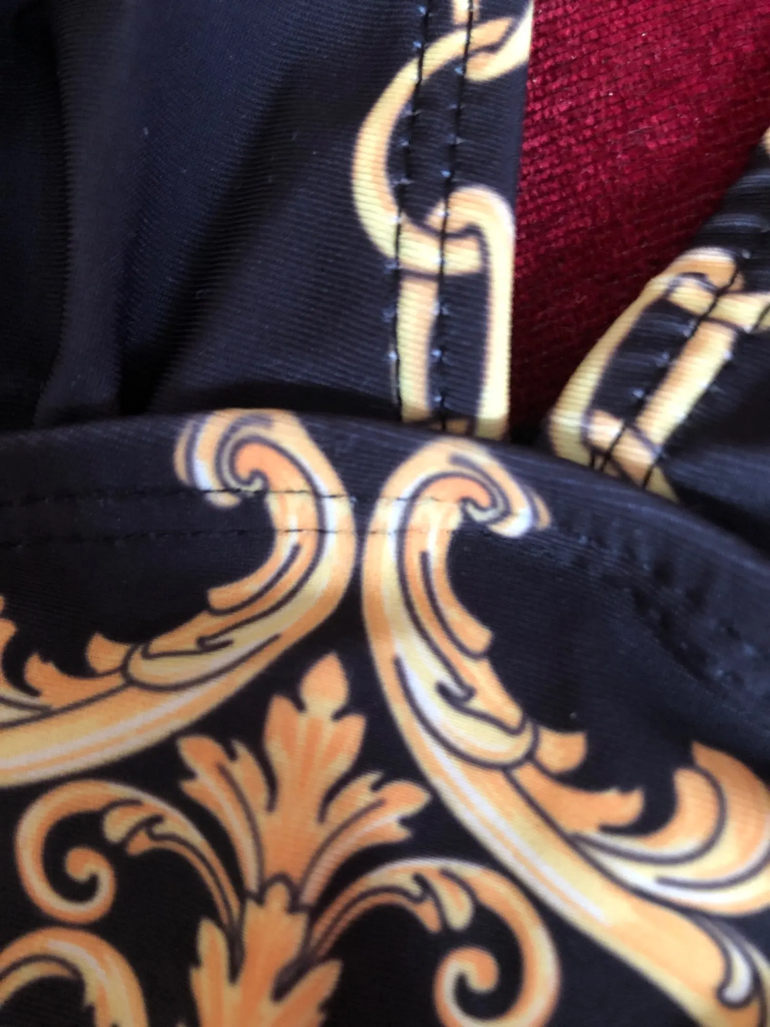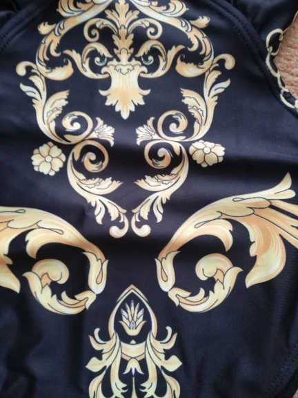 Очень быстрая доставка в Украину. Заказала 25.04 получила 9.05. Размер немного не соответствует сетке, но самое главное разочарование это кривой рисунок в центре. Пришито не семиотический. Смотрится ужасно, вряд ли буду носить, потому что центр рисунка и есть главное украшение этого купальника. Советую производителю внимательней относиться к качеству пошива!