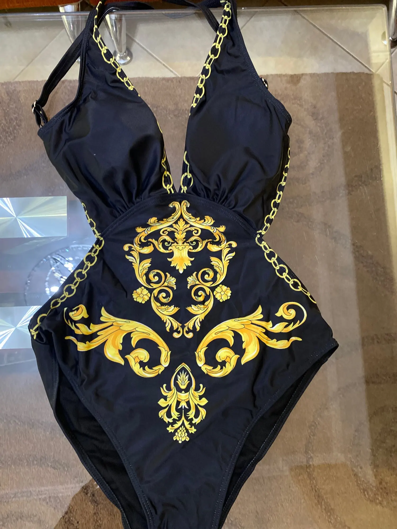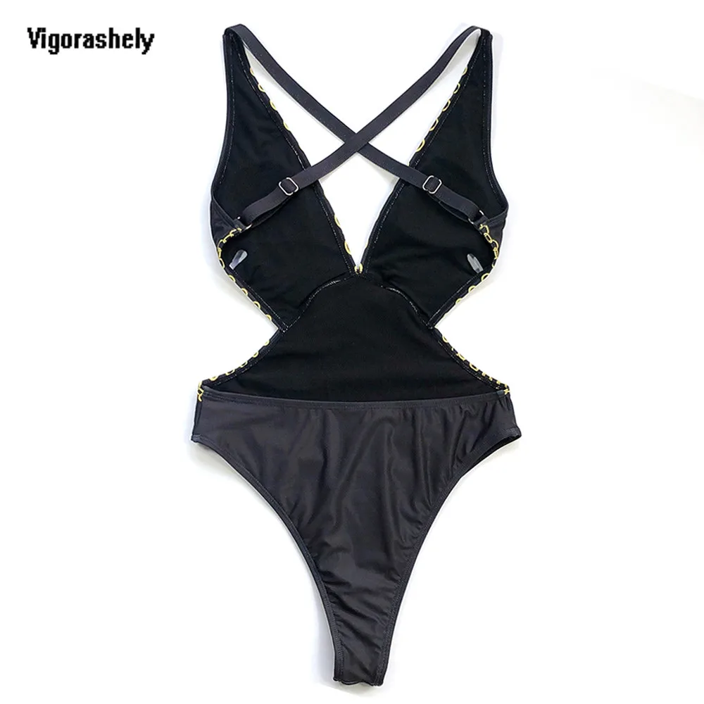 Сексуальная черная одежда для плавания Vigoashely с принтом, Женский винтажный Цельный купальник, Женский бандажный Монокини 2021, купальный костюм с глубоким V-образным вырезом, одежда для плавания