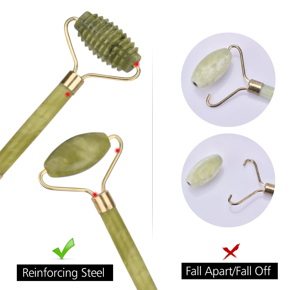 Нефритовый ролик для массажа лица с двумя головками, инструмент для похудения лица, тела, шеи, лифтинга, массажный ролик для лица, инструменты для ухода за красотой