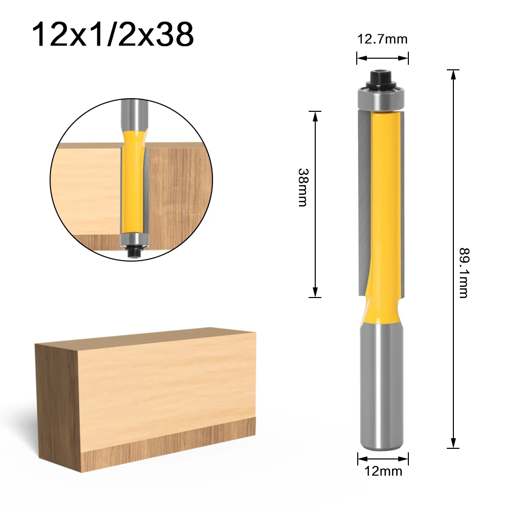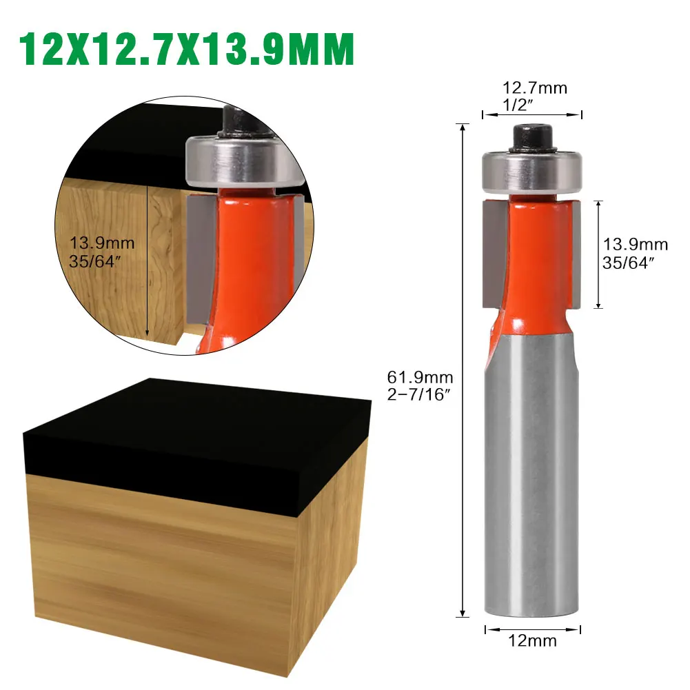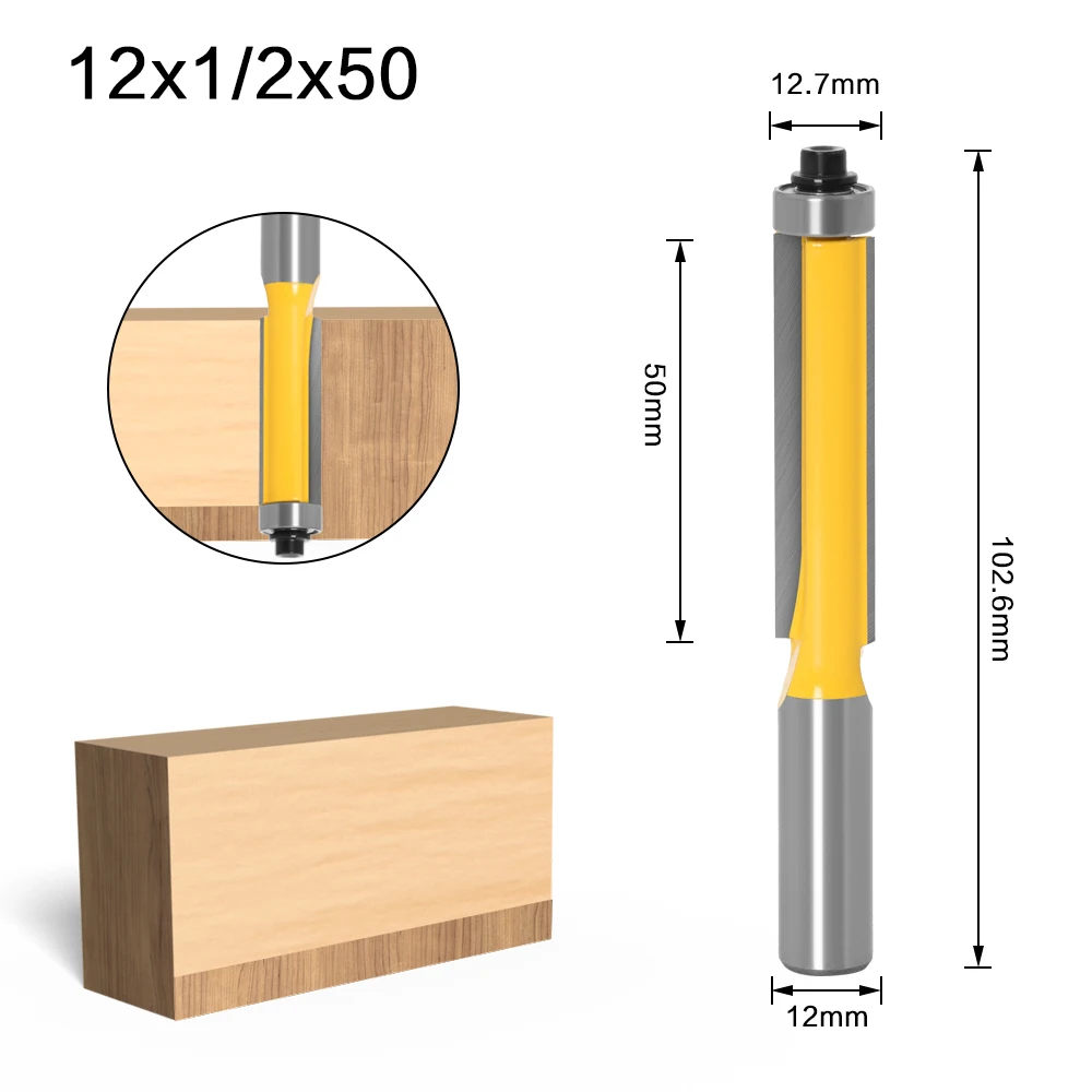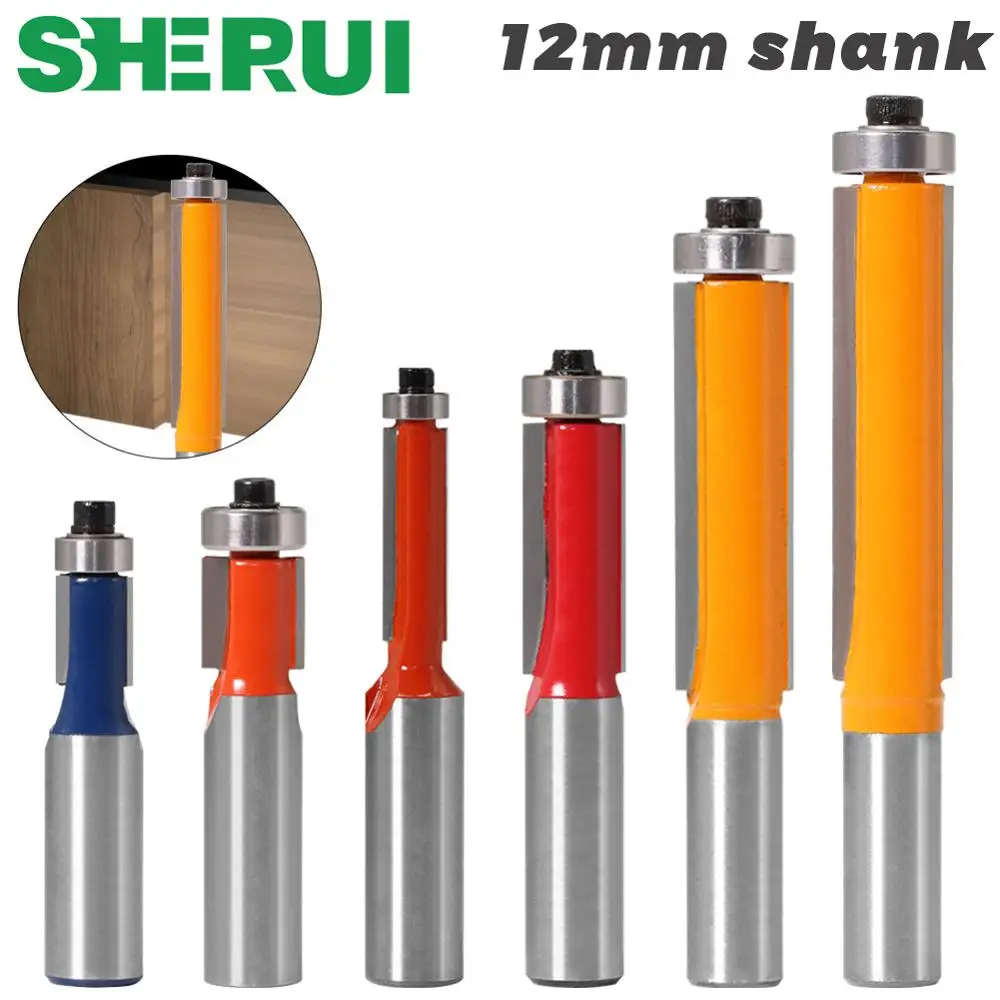 Фреза SHERUI с хвостовиком 12 мм, фреза с подшипником для дерева, насадка для шаблона, из карбида вольфрама, 1 шт.