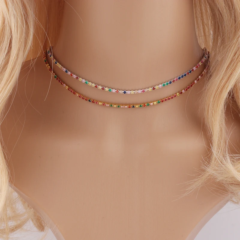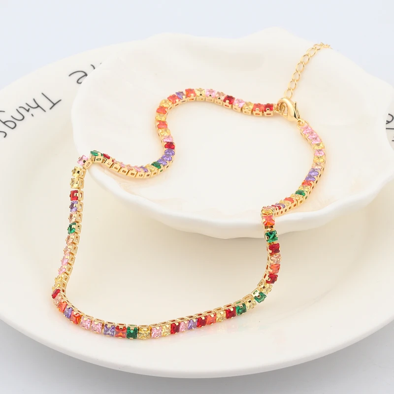 Качественная Радужная багетка newesбедра с фианитами, Геометрическая подвеска и ожерелья, красочные кристаллы, Золотые заполненные Женские Модные чокеры, подарки