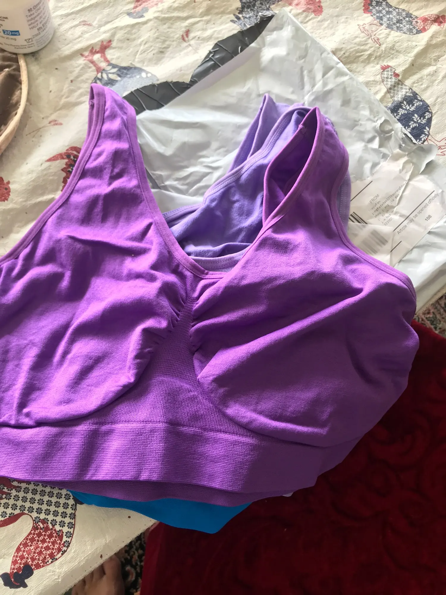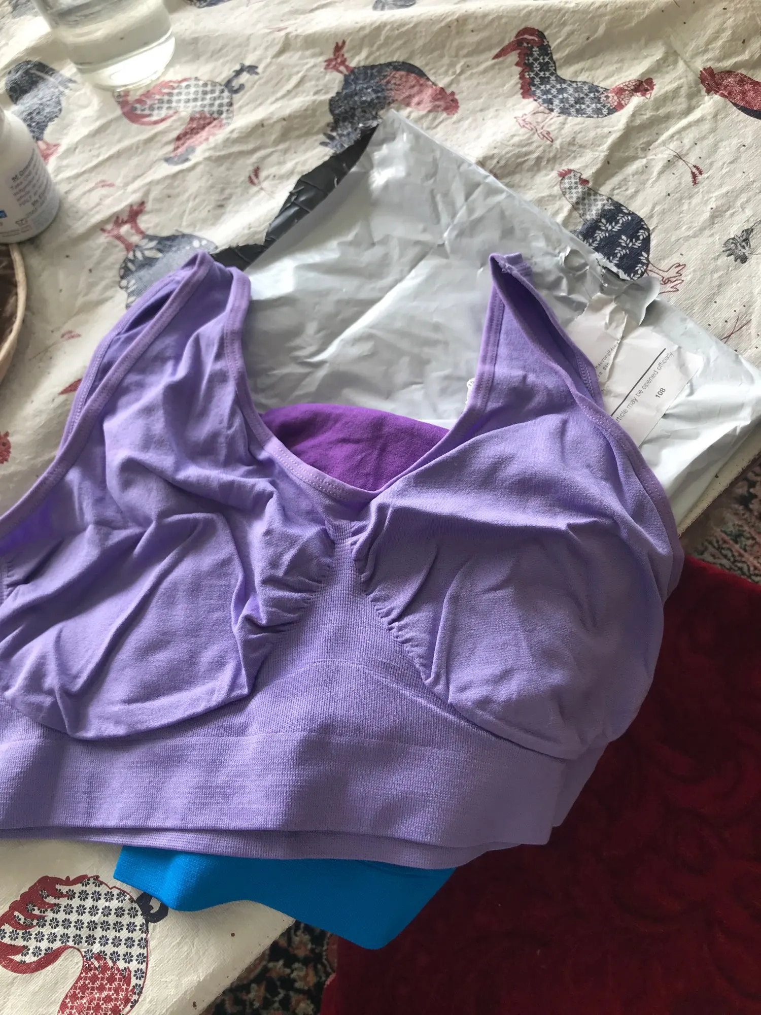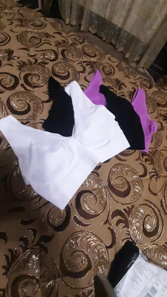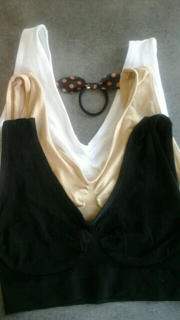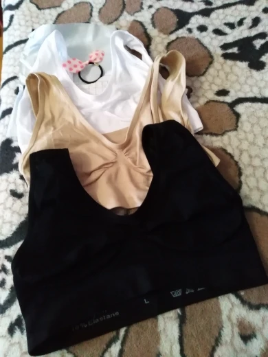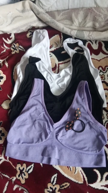 Товар отличного качества. Упаковано хорошо, в приятный плотный пакет с застёжкой. В подарок положили резинку для волос. Брала сразу два набора по три лифчика, они без застежек, тянутся хорошо, вроде не давят. Цвета как на фото, вкладышей нет, но ткань плотная.