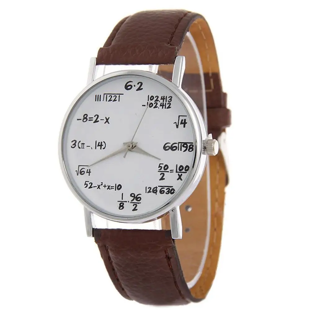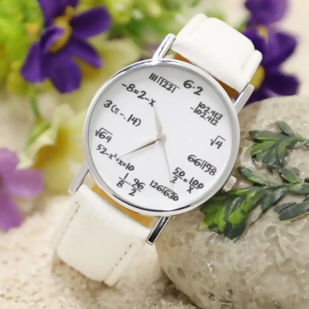 Женские кварцевые часы с кожаным ремешком, на математической формуле