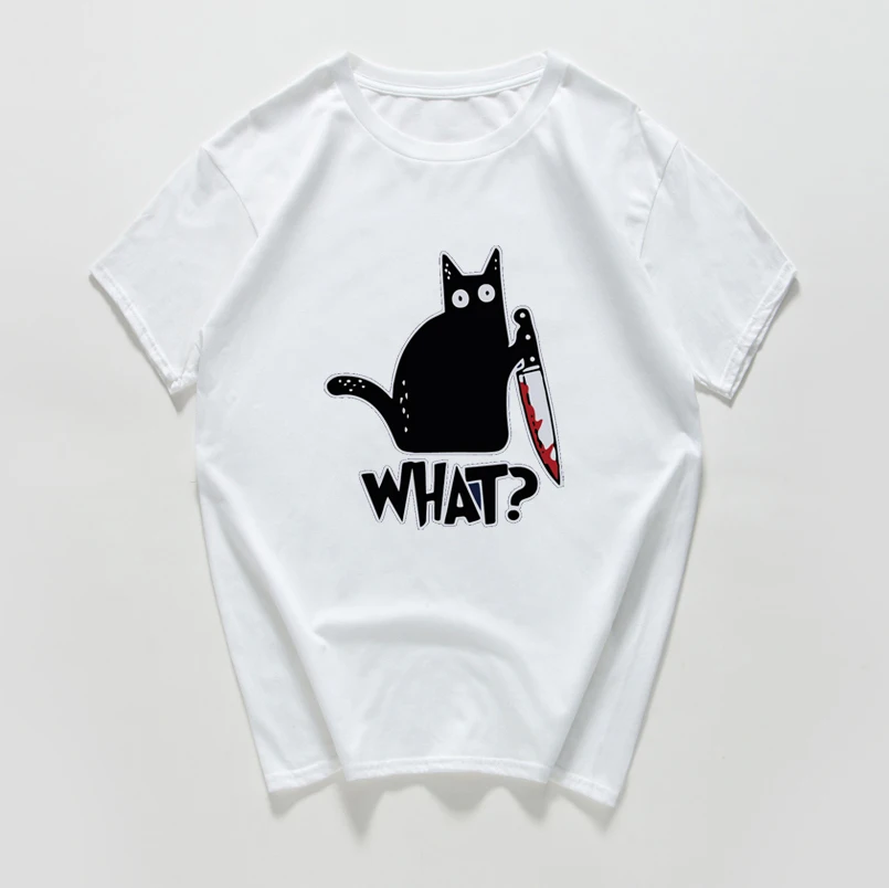 Футболка мужская, с рисунком кота и ножа, в винтажном стиле