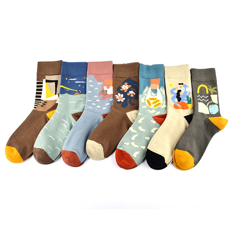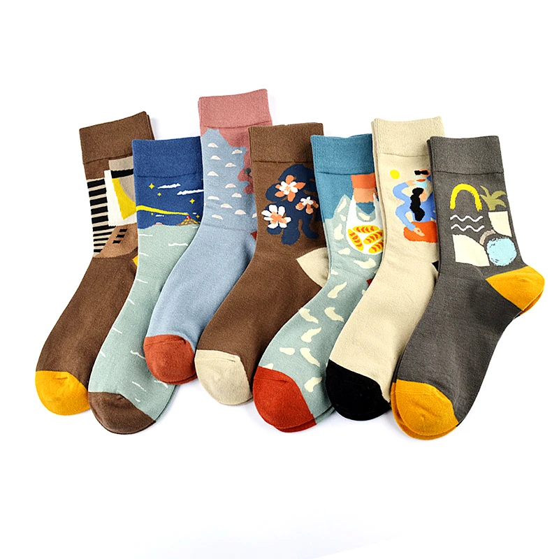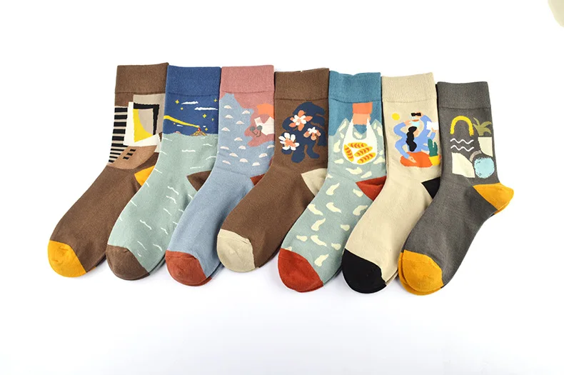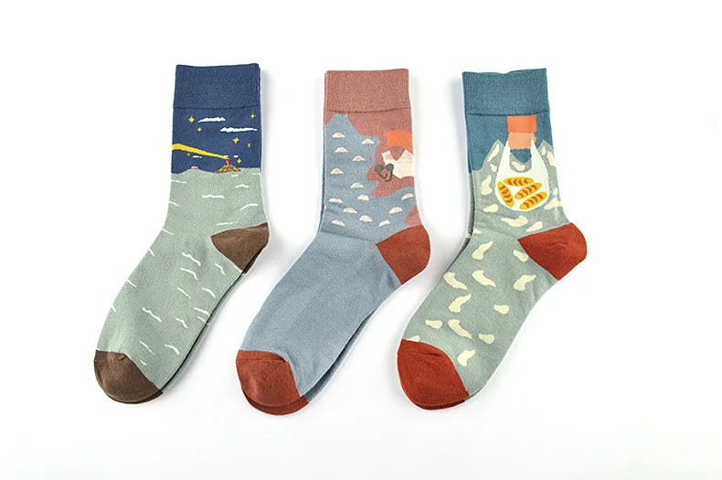 Хлопковые носки с вышивкой, мужские и женские, теплые, в японском стиле, короткие, для зимы, милые Мультяшные носки