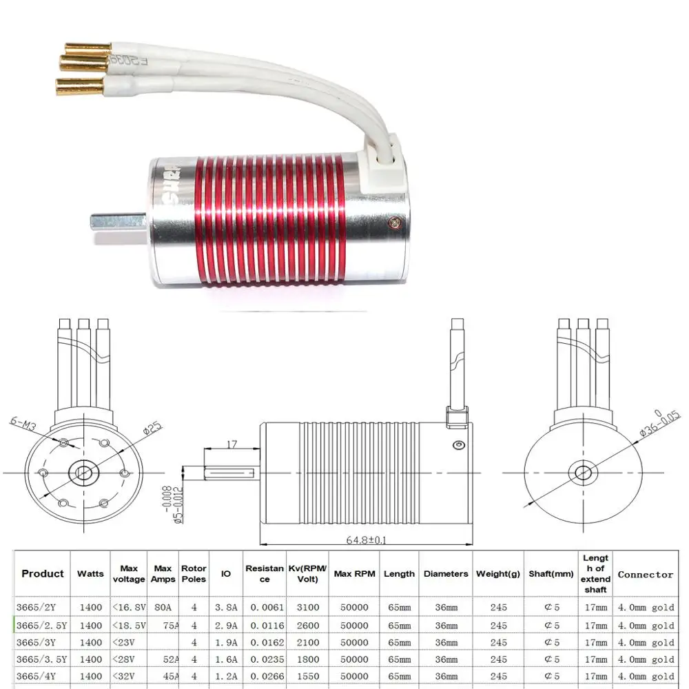 SURPASSHOBBY Platinum Водонепроницаемая серия 3665 1550KV 1800KV 2100KV 2600KV 3100KV бесщеточный вал диаметром 5 мм мотор для 1/10 RC модель автомобиляОсобенности:Особенности двигателя:1,4 полюса 12 слотов высокий крутящий момент дизайн двигателя.2.CNC обработанный алюминиевые заготовки 6061 T6 радиатор.3. Высокая чистота медных обмоток увеличивает эффективность.4. Большие подшипники ABEC5 с высокой скоростью вращения.5. Универсальная посадка, подходит для всех 1/10 бесщеточные автомобили-мульти-Монтажная система.6. Прецизионный сбалансированный ротор, гладкость для лучшей надежности и максимальных оборотов в минуту.7. Статор-Супер тонкий (0,35 мм) ламинационный Съемный/сменный ротор.8. Точность разработана для максимального преобразования энергии.Характеристики мотора:Бренд: SURPASS HOBBYМодель: Платиновый водонепроницаемый 3665Полюсы: 4Ватт: 1400 ВтКВ (об/мин/Вольт): 1550кв 1800кв 2100кв 2600кв 3100кв (опционально)Макс. Об/мин: 50000Длина: 65 ммДиаметр: 36 ммДлина удлиненного вала: 17 ммДиаметр вала: 5 ммРазъем: 4,0 мм Золотой вилка типа бананВес: 245 гИнформация о посылка:Размер посылка: 110*70*43 ммВес посылка: 273 гПосылка в подарочной коробкеПосылка включает в себя:1*3665 бесщеточный мотор1 * Руководство пользователя