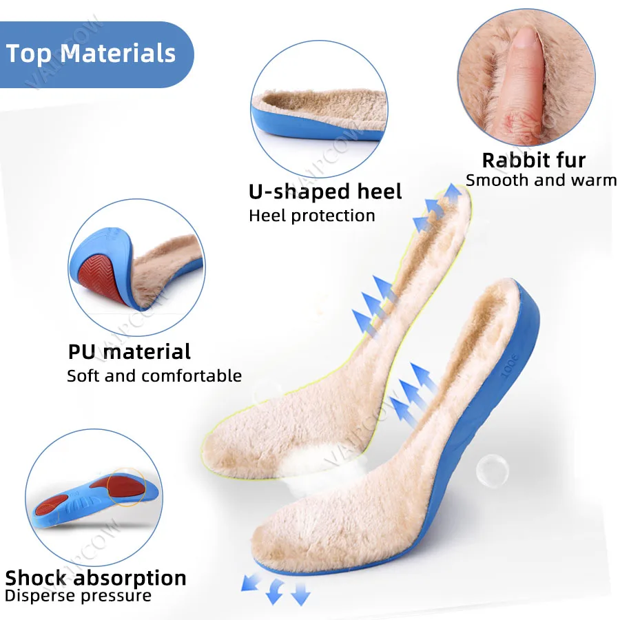 Теплые стельки с подогревом, утолщенные стельки из кроличьего меха, ортопедические стельки, супинатор плоскостопия для мужчин и женщин, стельки для обуви