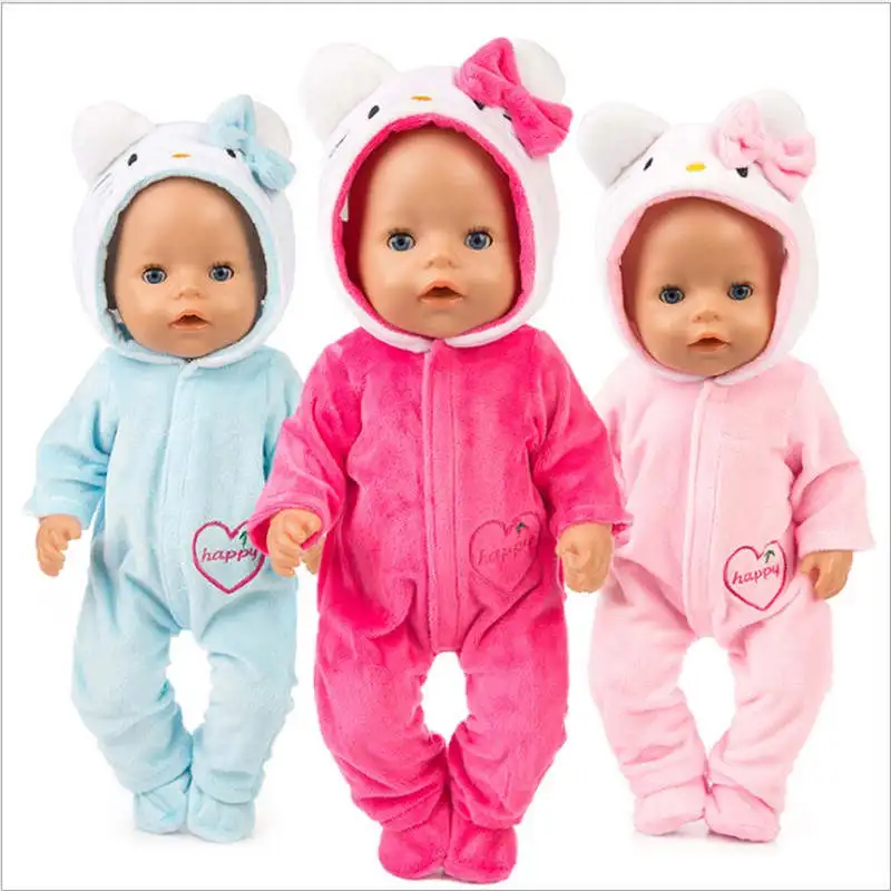 Пижамный комплект для новорожденных девочек, размер 43 см, розовая кошечка, единорог, пони, 18 дюймов