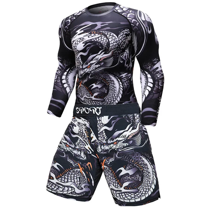 ММА Jiu Jitsu (джиу джицу) футболки Для мужчин бокс, комплект из Джерси, Бразильское джиу джицу, кикбоксинг, муай-тай шорты Длинные штаны 3D с принтом спортивный костюм для мальчиков