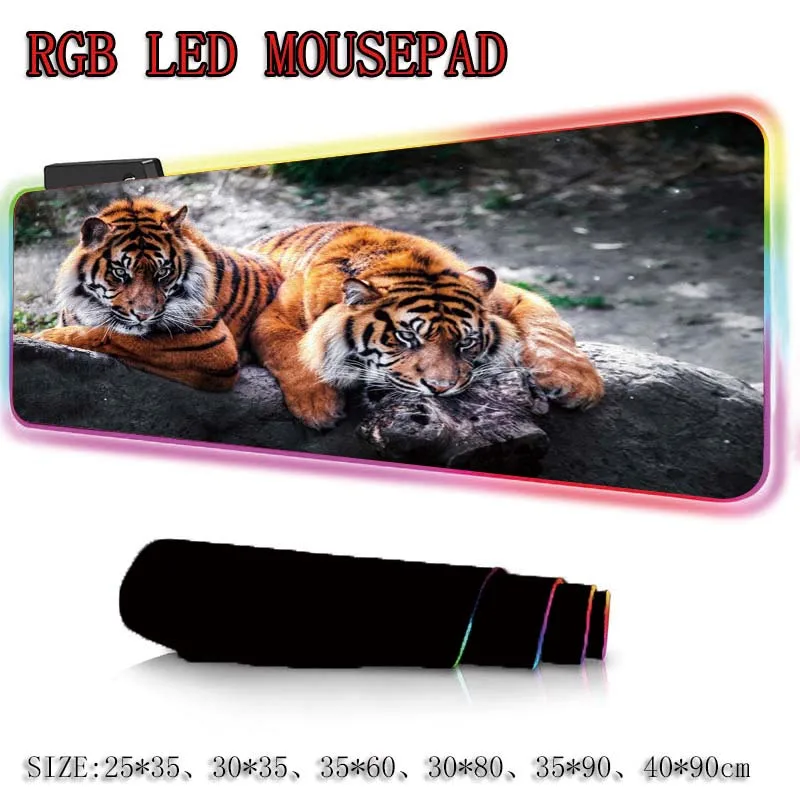 XGZ компьютерный коврик для мыши с двумя тиграми, светодиодный коврик для мыши для игр, геймерский большой коврик для мыши XL RGB, USB Коврик для мыши для клавиатуры, настольного ПК