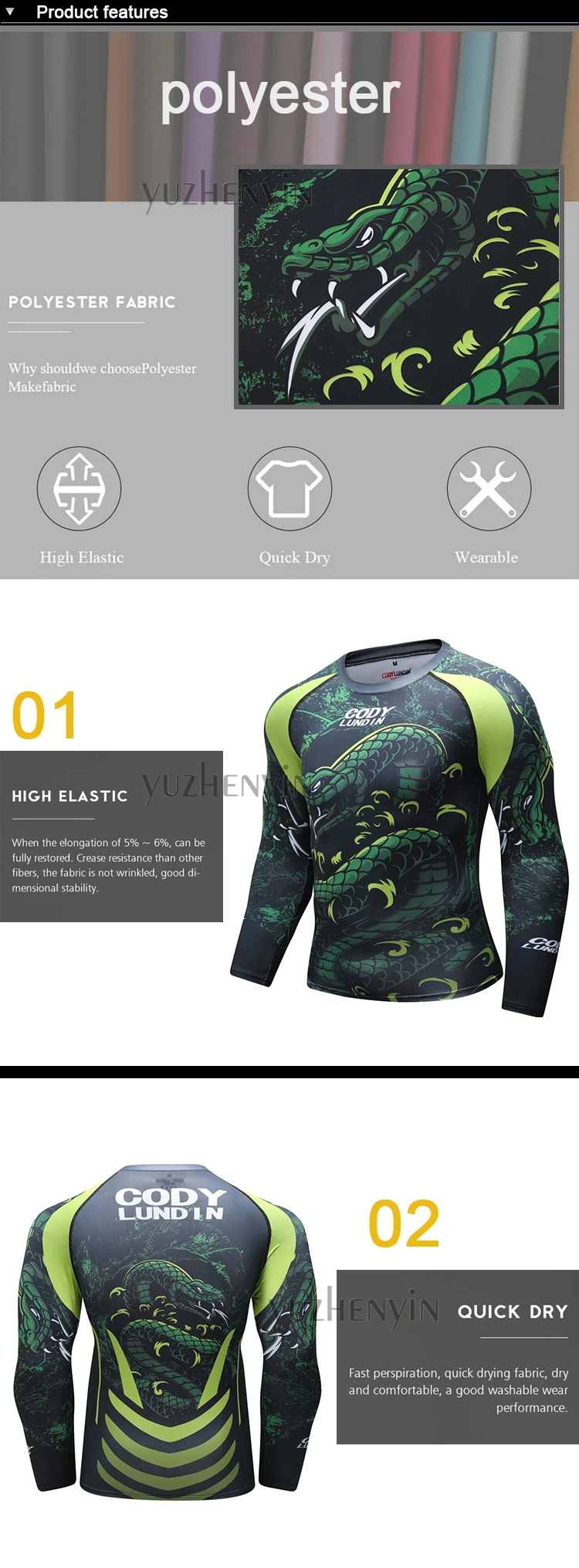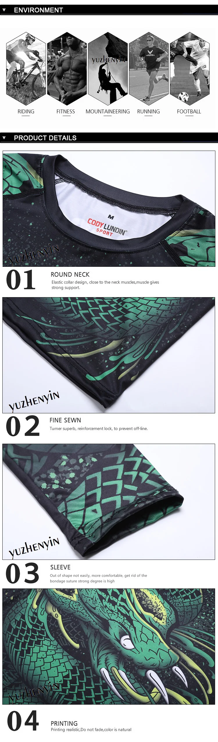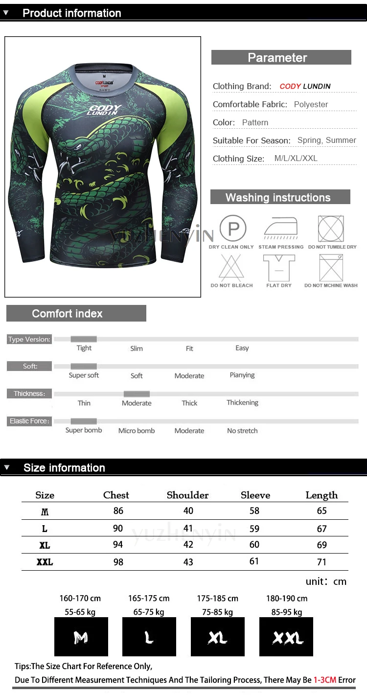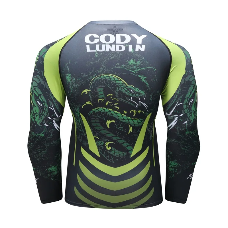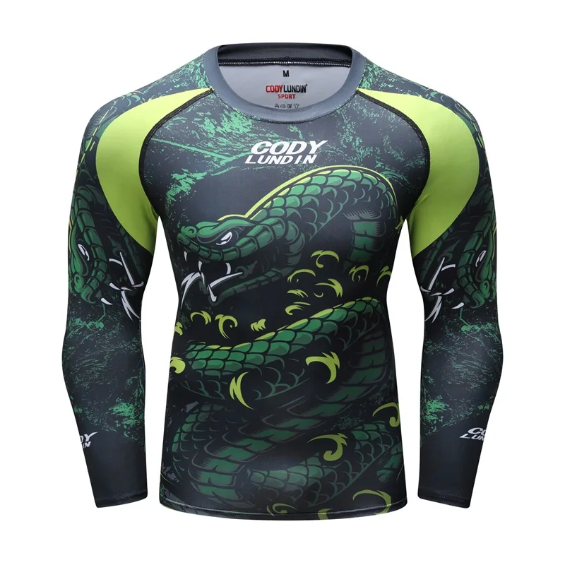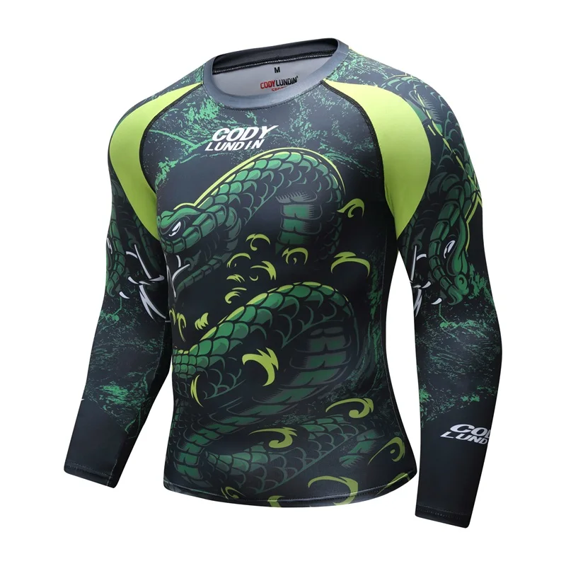 Новая мужская компрессионная рубашка Рашгард с длинными рукавами и 3D принтом Футболка ММА фитнес Мужская быстросохнущая Бодибилдинг Топ Cody lundin
