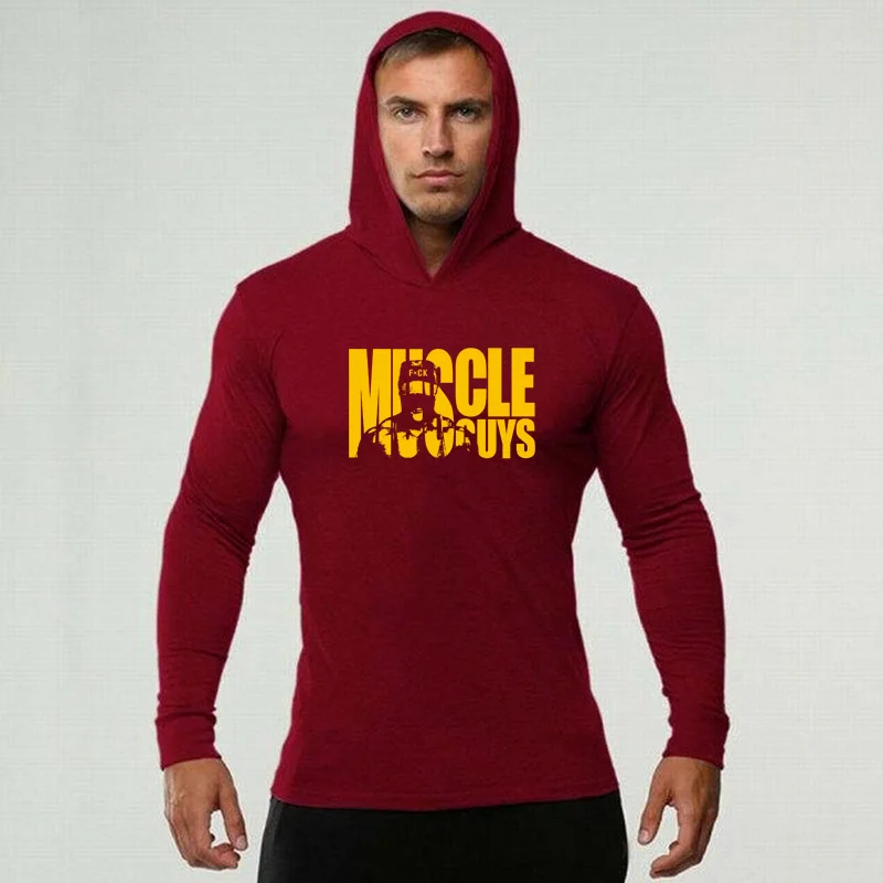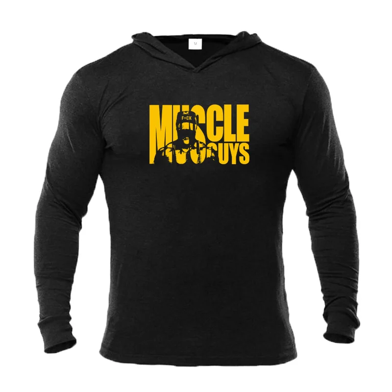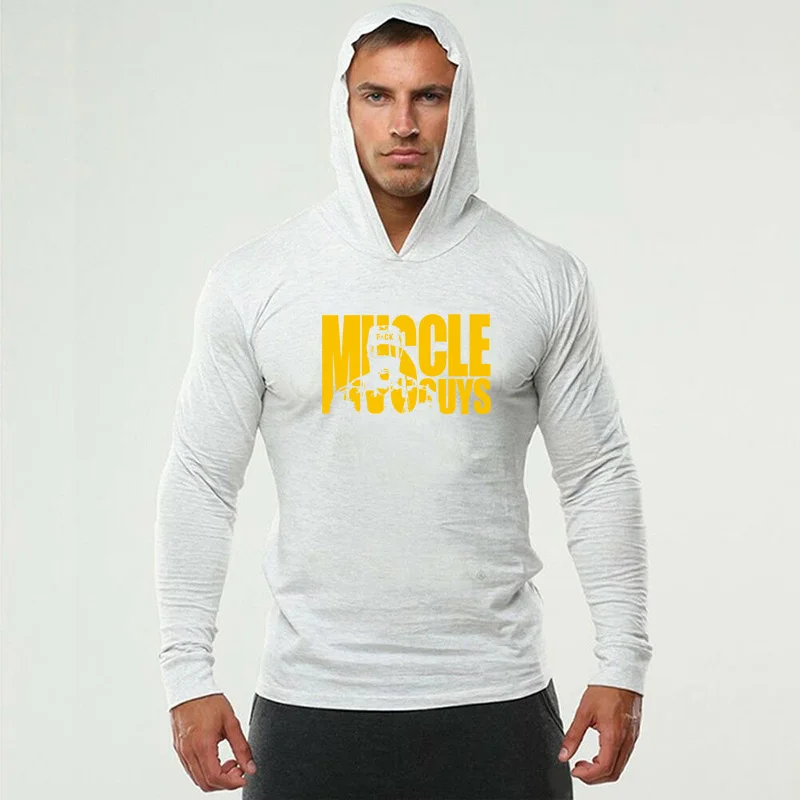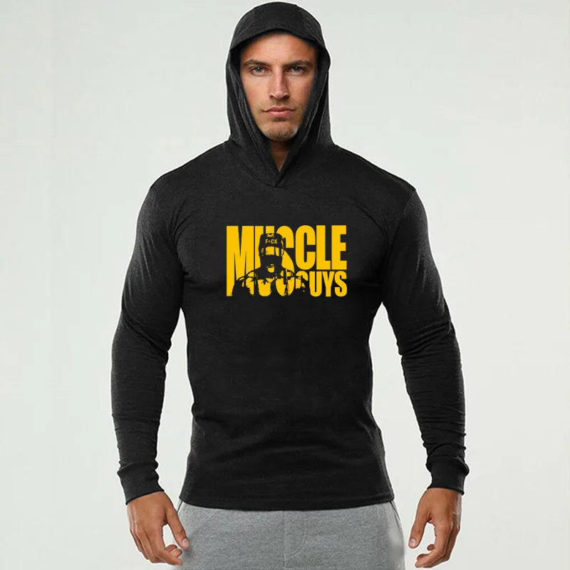 Бодибилдинг с длинным рукавом с капюшоном Футболка мужская осенний ...