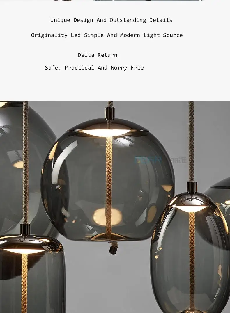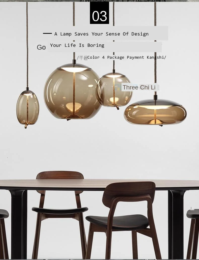 Светодиодные подвесные светильники в скандинавском стиле, стеклянна...