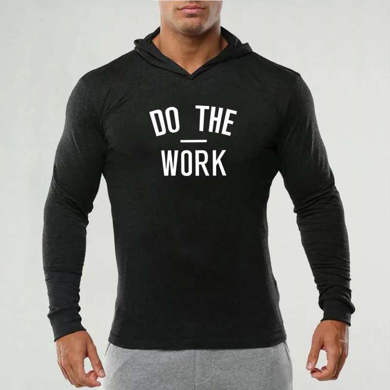 Фирменная одежда для тренажерного зала, Приталенная футболка с длинным рукавом и капюшоном, Мужская хлопковая футболка, бодибилдинг и фитнес