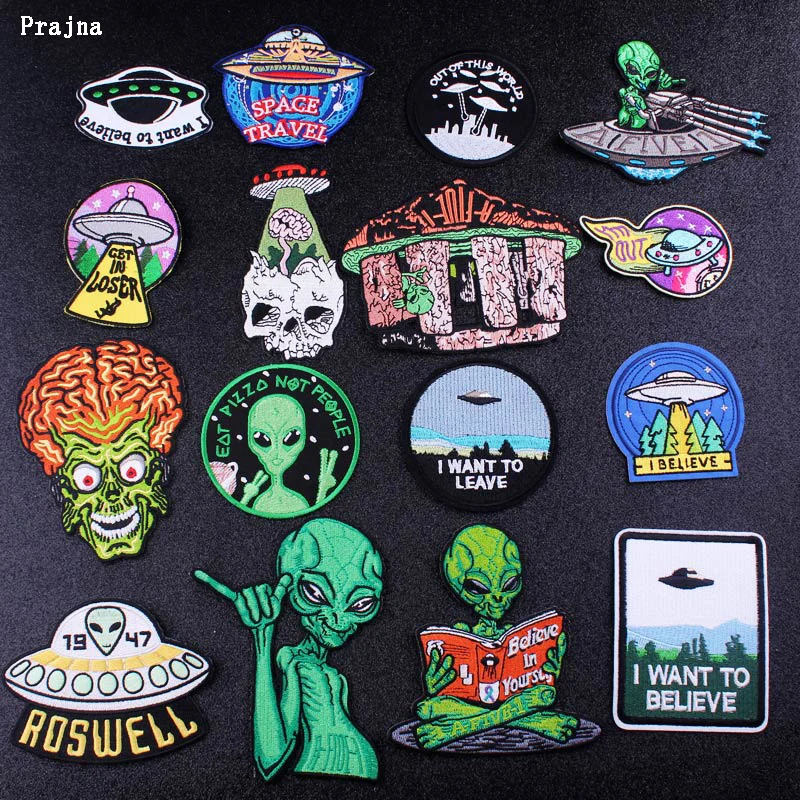 Prajna Мультяшные нашивки с инопланетянинами, НЛО, тканевые нашивки, вышитые нашивки для одежды, аппликация, рок, Череп, полосы, значки, термоклейкие нашивки, сделай сам