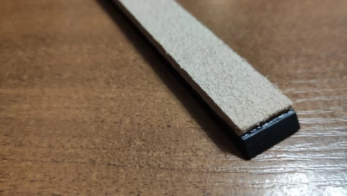 Качество кожи на три из пяти ,больше похоже на прессованные древесные опилки,но точит хорошо ,зеркальный блеск .Бритвенной остроты не удалось достичь может нужно приловчиться но нож получается очень острый