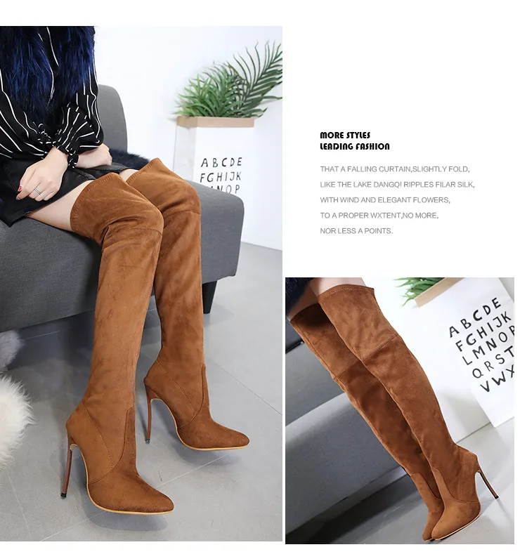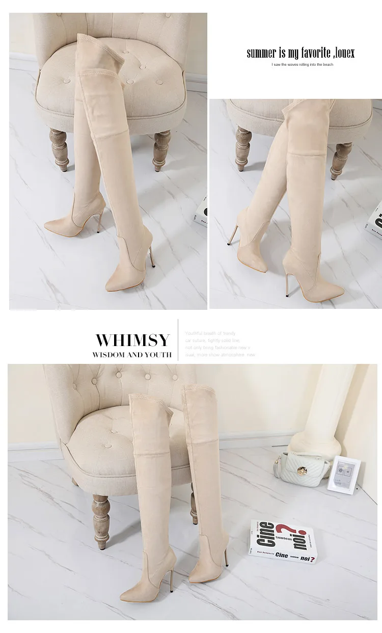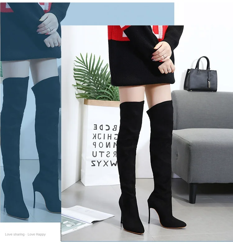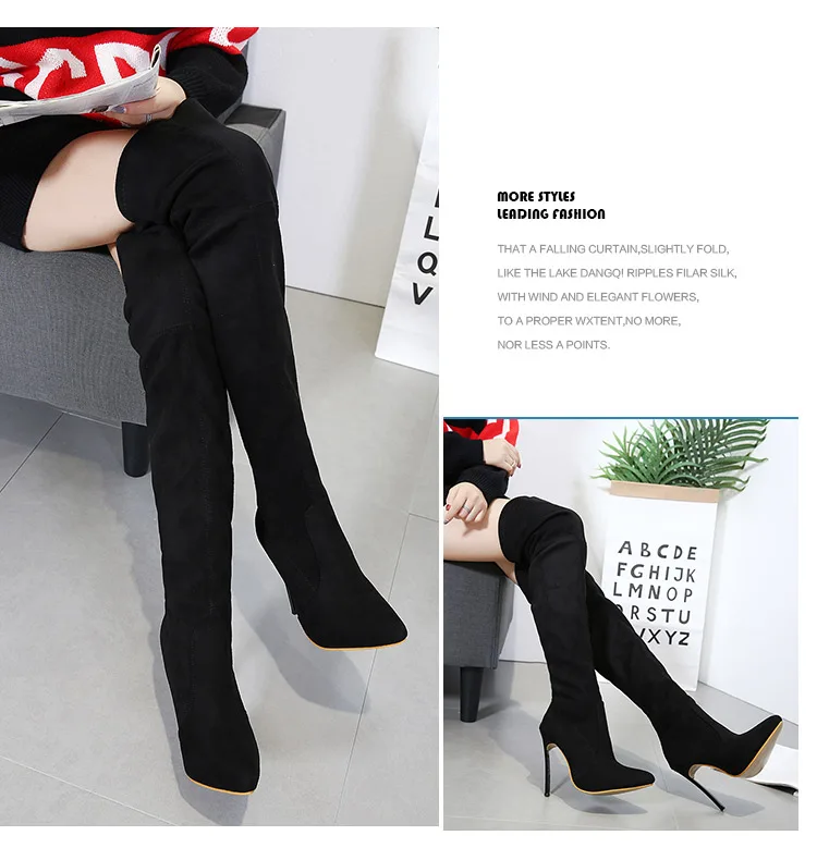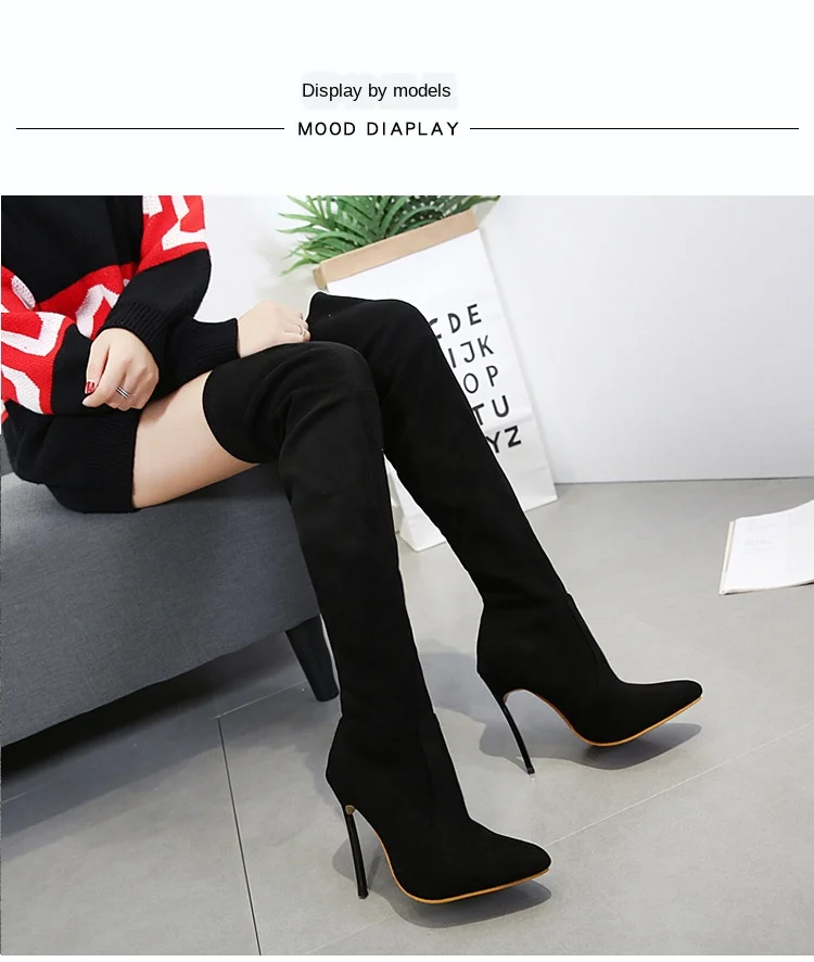 Сапоги женские до колена с острым носком, на тонком каблуке 11 см, 2021