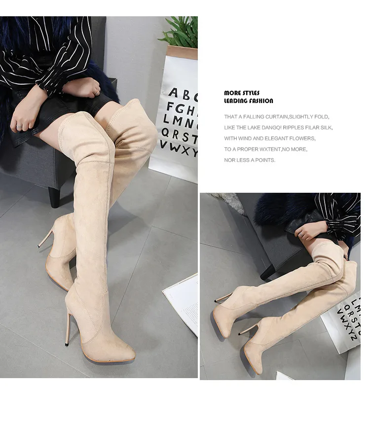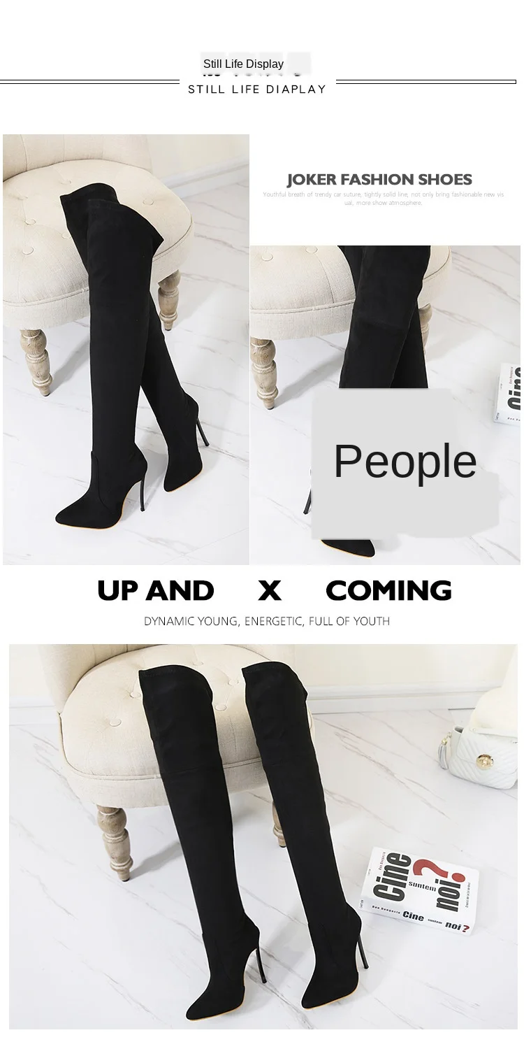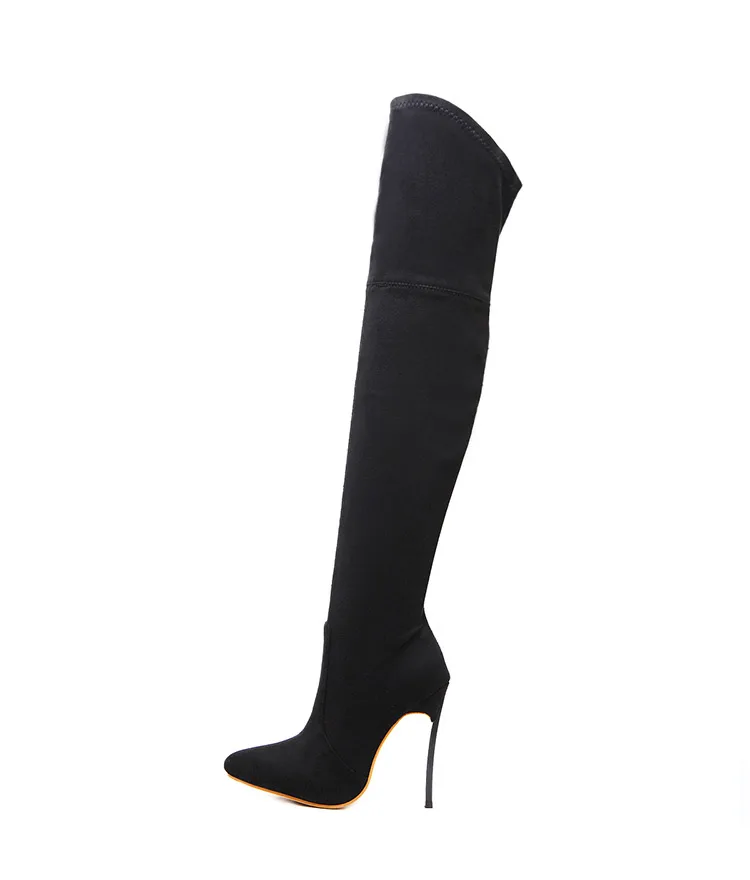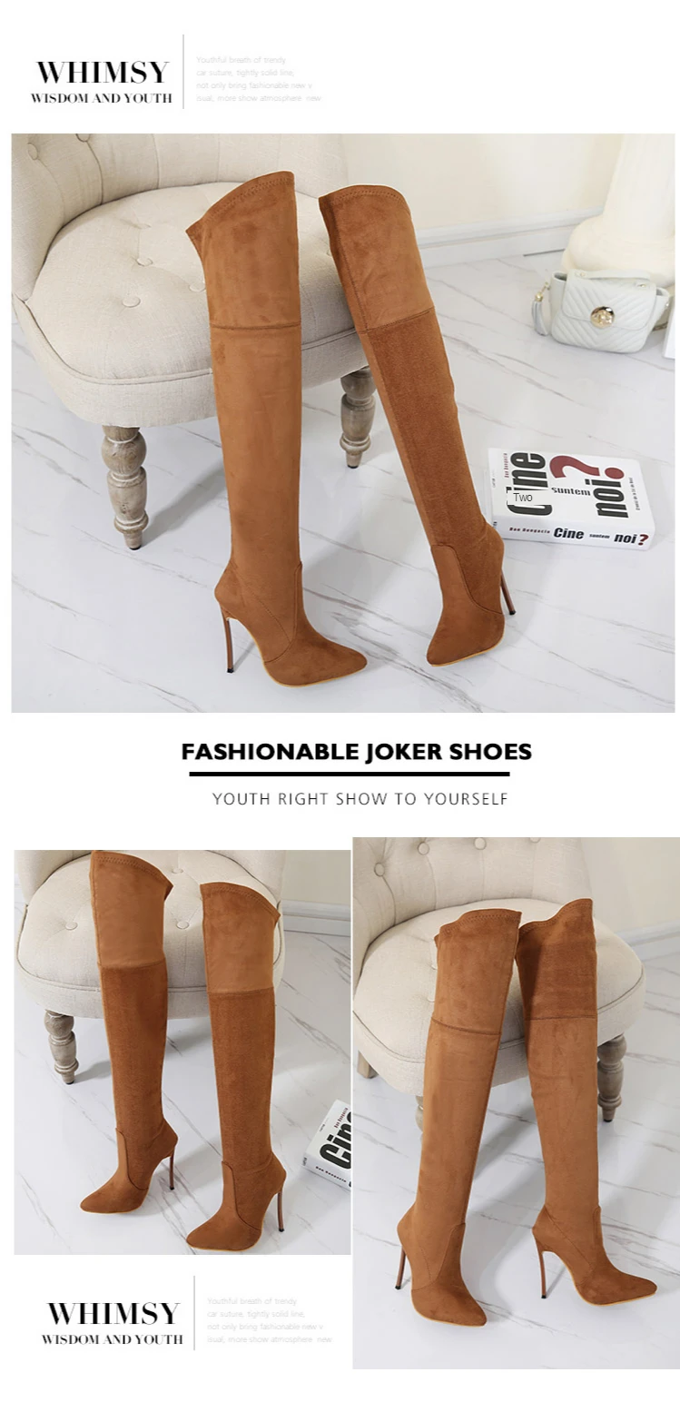 Сапоги женские до колена с острым носком, на тонком каблуке 11 см, 2021
