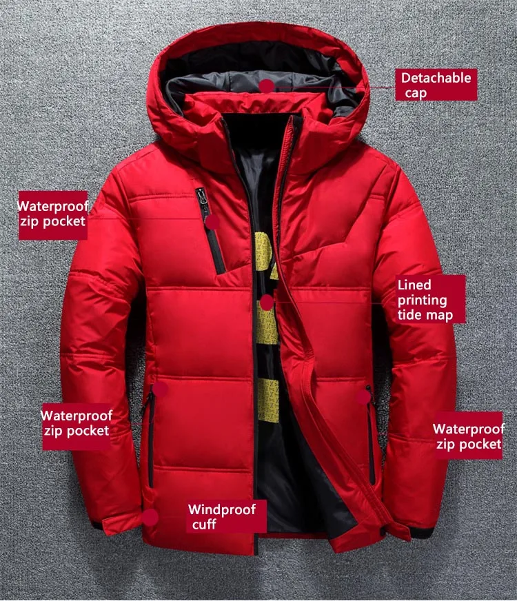 Куртка мужская зимняя, с капюшоном, водонепроницаемая, Повседневная