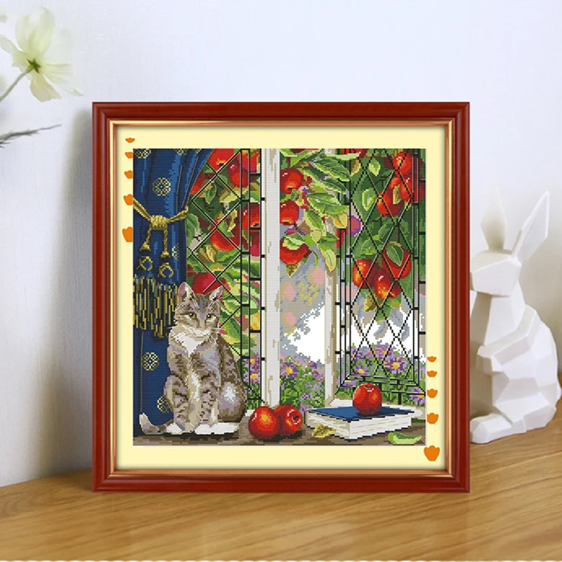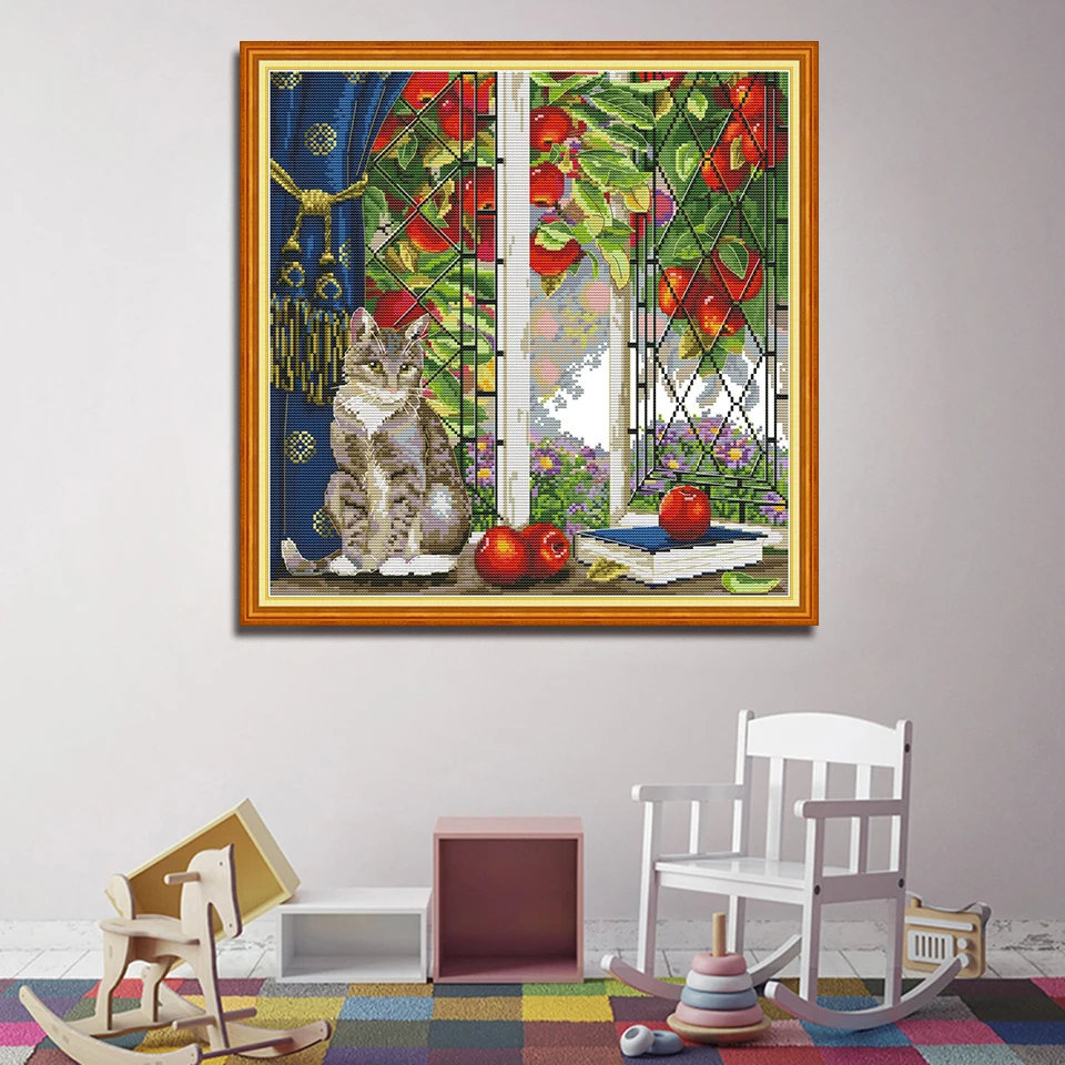 Набор для вышивки крестиком Joy Sunday с изображением кошки на подоконнике, Китайская вышивка с рисунком, подходит для подвешивания в детской комнате