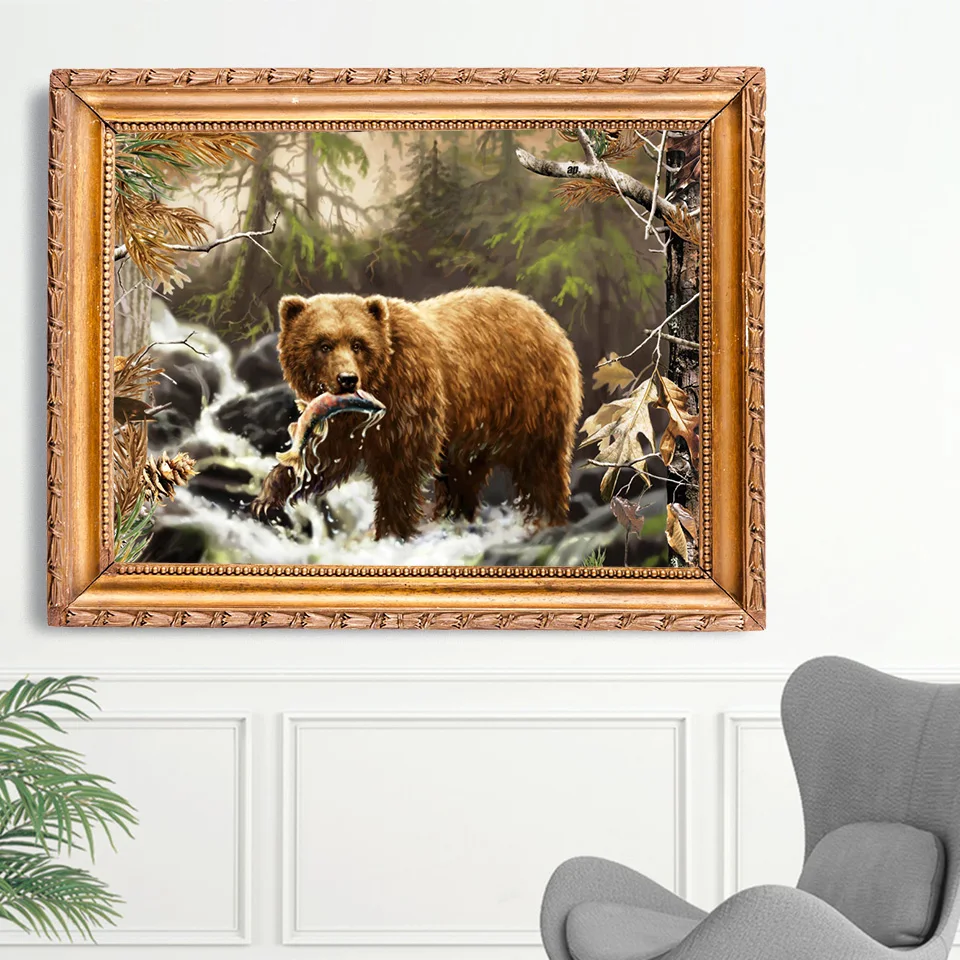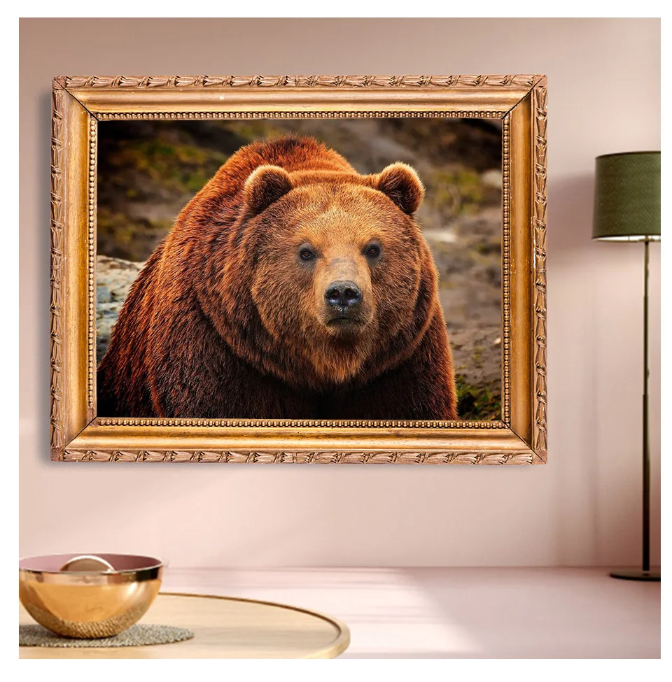 Алмазная 5D картина сделай сам, Набор для вышивки крестиком медведя, полноразмернаякруглая Алмазная вышивка с животными, мозаика стразы, картина для домашнего декора