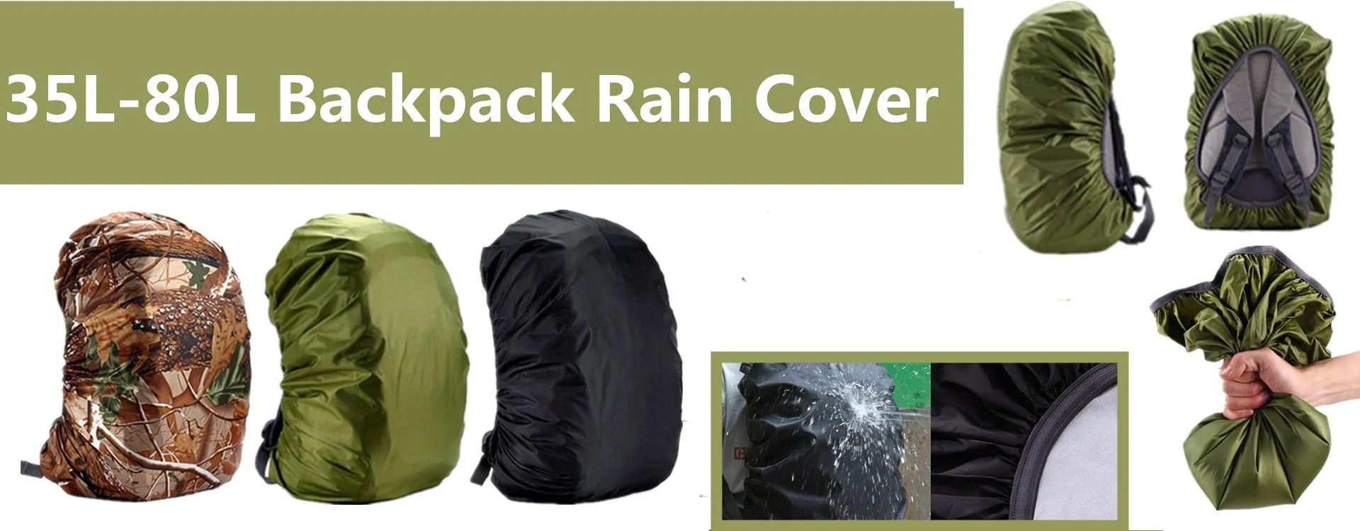 Чехол пришёл на кассу Пятёрочки. На рюкзак типоразмера 3-day Assault 35 литров сел идеально, с небольшим запасом. Под дождём не проверял, но на вид должен спасать. Рекомендую!