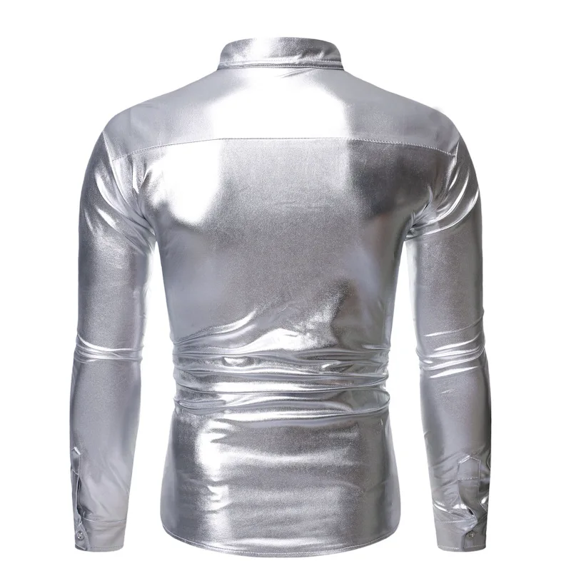 Мужская приталенная рубашка, сияющая рубашка с золотыми блестками, с длинным рукавом, для сцены, 2021