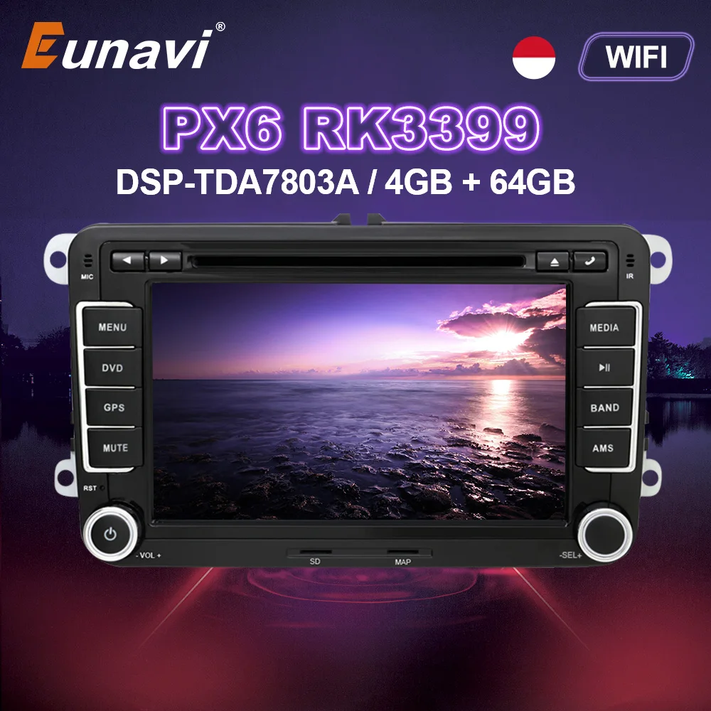 Автомагнитола Eunavi 2DIN, 7 дюймов, Android 10, DVD, GPS, для VW GOLF 5, 6, Polo, Bora, Jetta B6, B7, Passat Tiguan