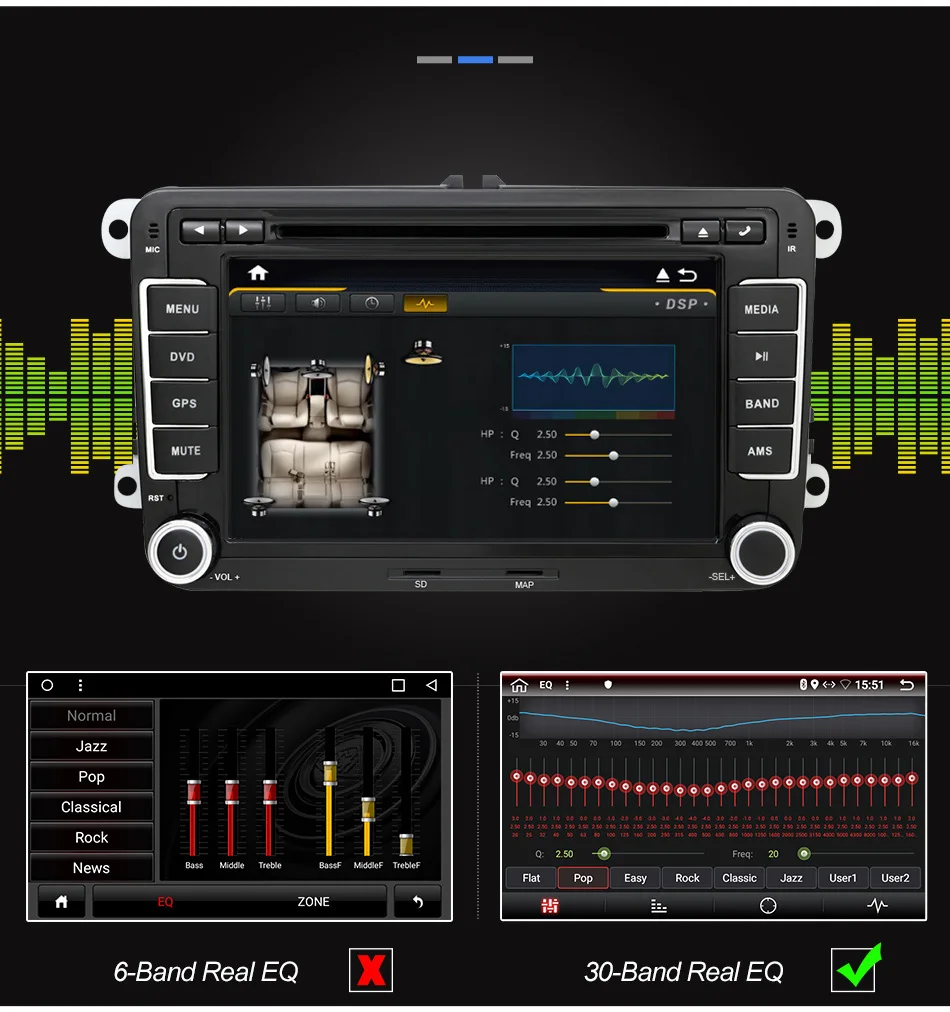 Цифровой звуковой процессорБолее профессиональный чипAKM7738 + TDA7803A
