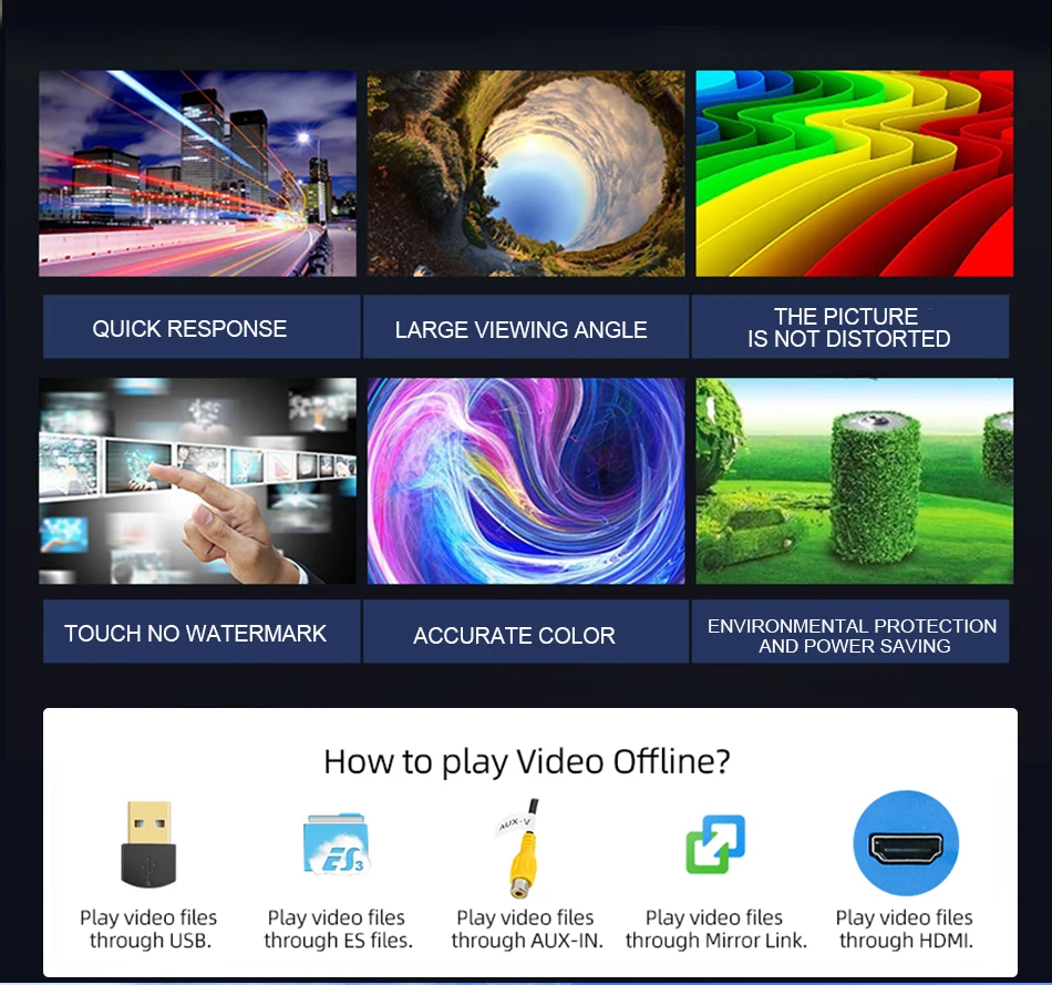 Зеркальная ссылкаПоддержка зеркального соединения для Android и IOS устройств через USBКабель или WIFI. Даже добиться взаимного контроляМежду этим блоком и вашим телефоном