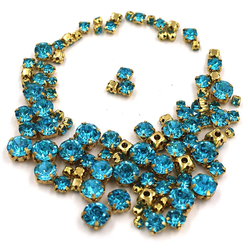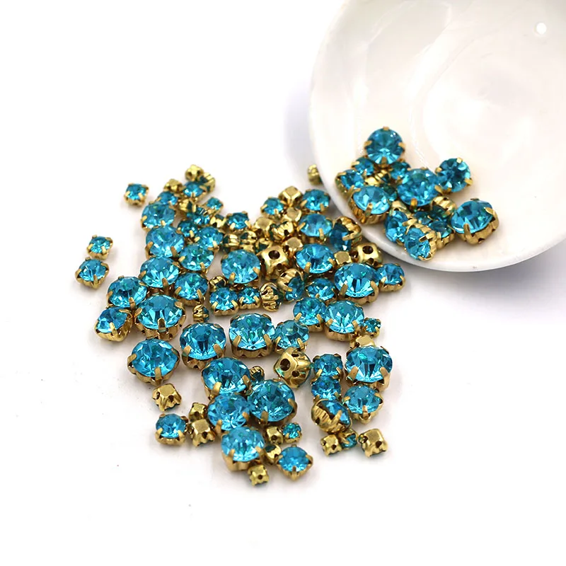 Хит продаж, 100 шт.пакет, разноцветные стеклянные стразы разных размеров, золотые стразы для шитья, голубые стразы, свадебные украшения сделай сам
