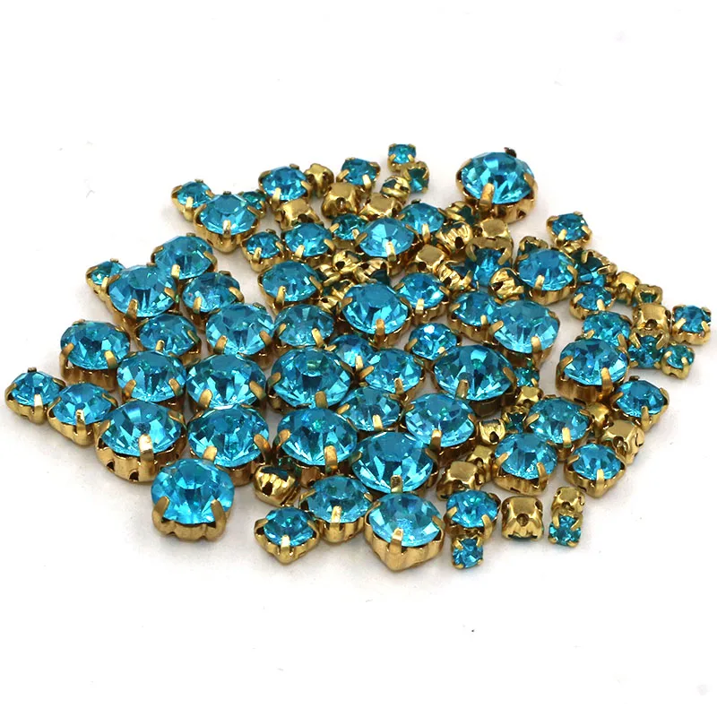 100 шт./пакет, смешанные размеры, светло-голубые стеклянные стразы, хрустальные бусины для одежды, Золотая основа, Стразы для шитья, сделай сам, свадебное украшениеUSD 2,64Шт./упаковка