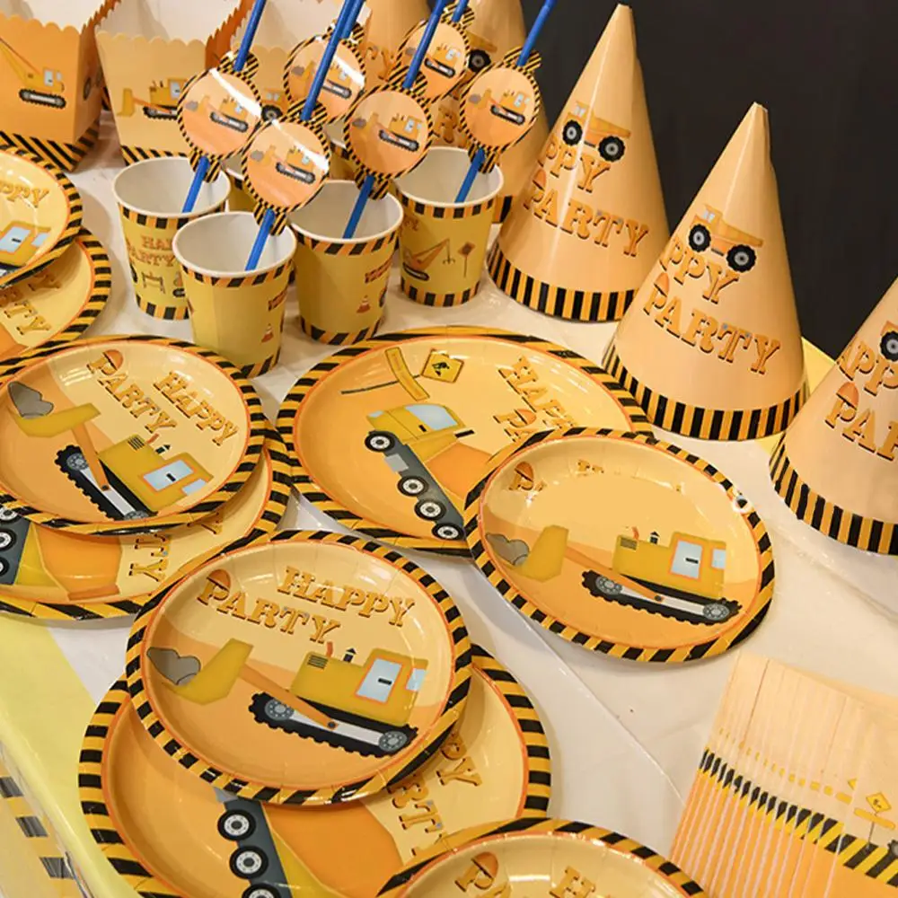 Строительство трактор тематическая посуда для вечеринки в честь Дня Рождения экскаватор надувной шар для мальчиков день рождения принадлежности