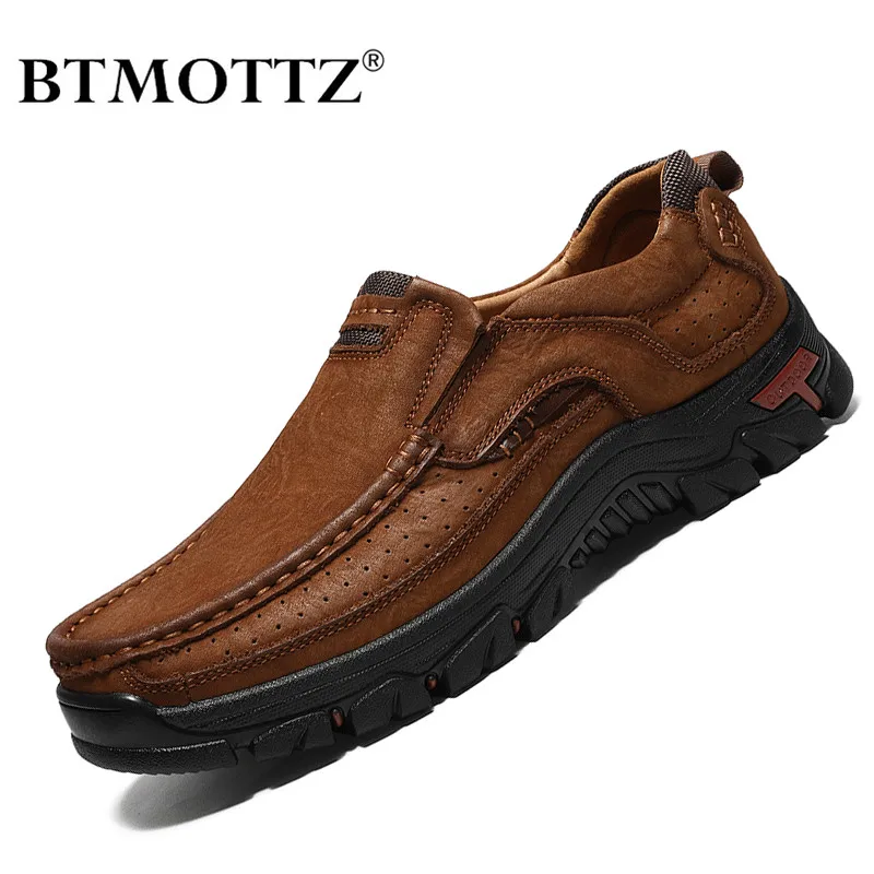 Мужские кожаные кроссовки, дышащие легкие Мокасины, ручная работа, ...