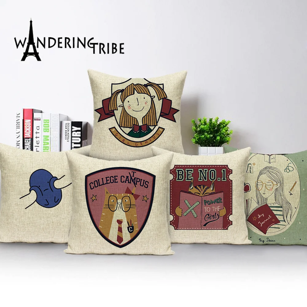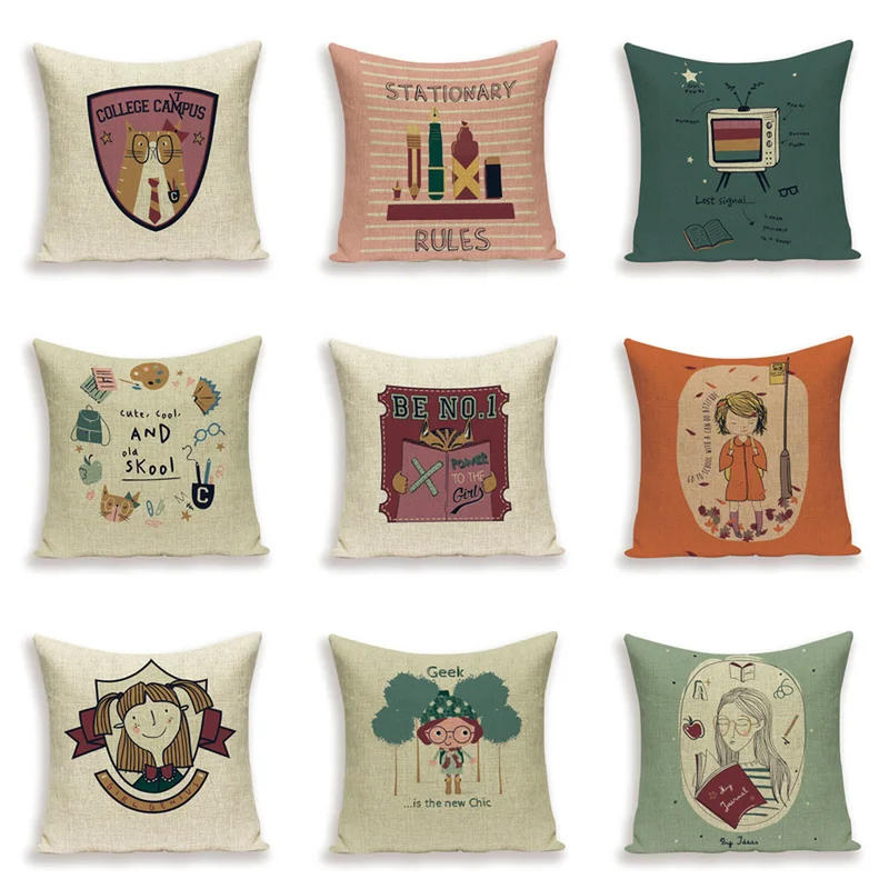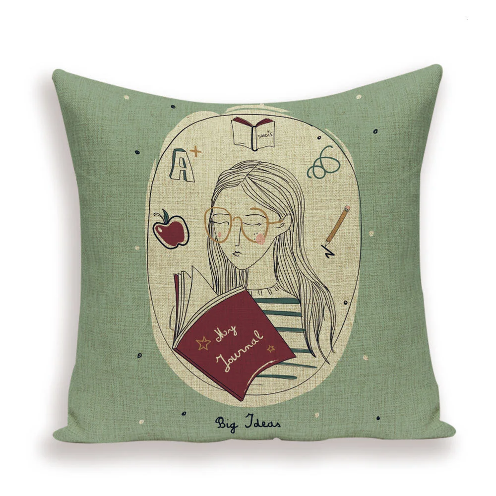Для девочек с героями мультфильмов, Обложки Подушки портрет книга льняные Чехлы для подушек подушка чехол с надписью украшения дома диван подушки на кровать чехол s киссен