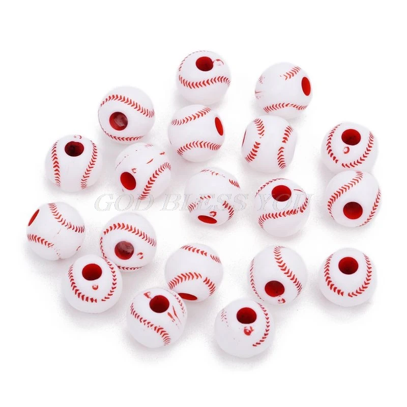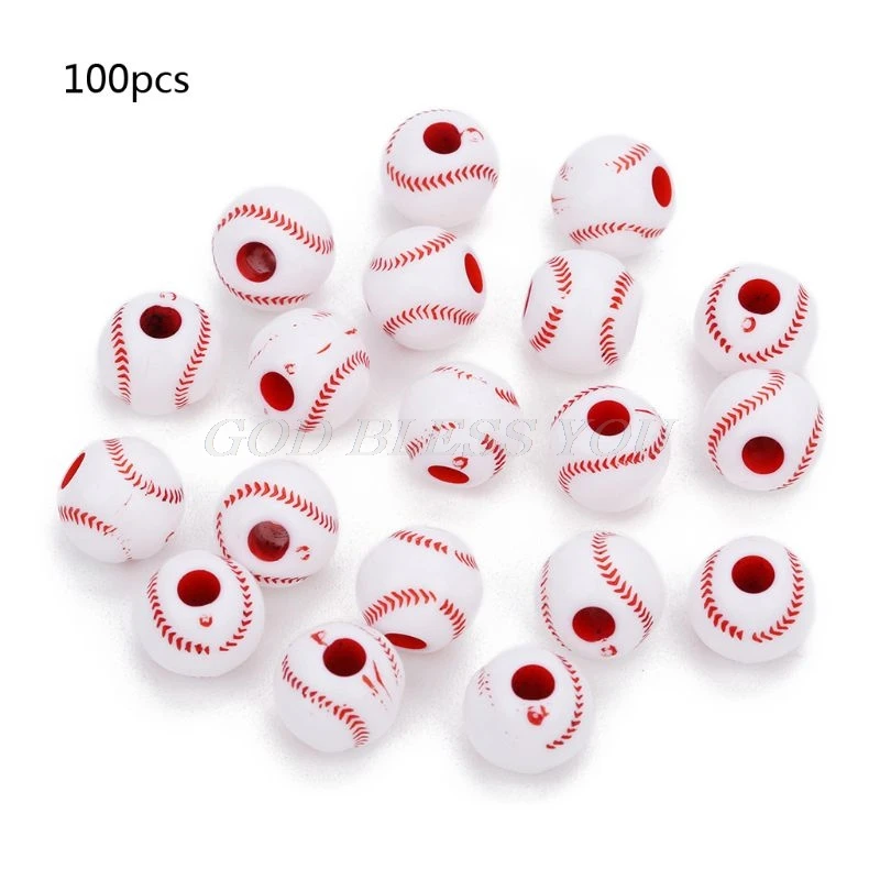 100 шт., акриловые Круглые бусины для теннисных мячей, бейсбола, регби, футбола, баскетбола, 12 мм, спортивные разделительные бусины для пони, изготовление ювелирных изделий своими руками