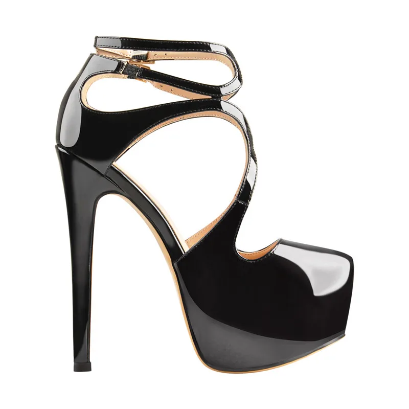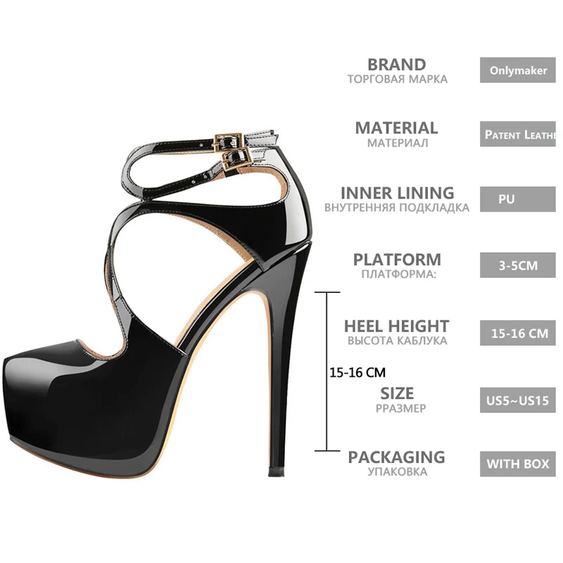 Onlymakerженские туфли-лодочки на высоком каблуке 15-16 см с ремешком на щиколотке и на платформе с острым носком Большие размеры US5-US15