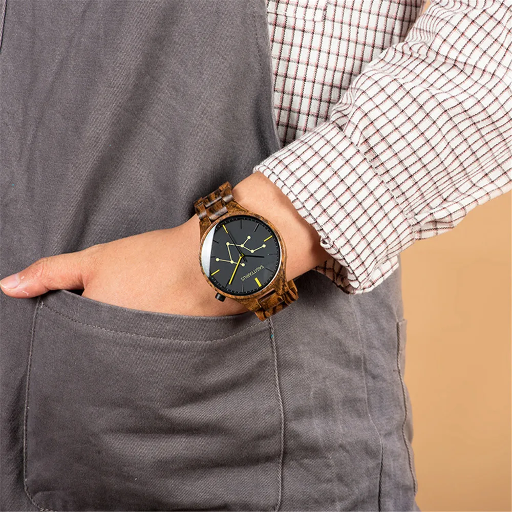 Часы наручные, деревянные, с именем созвездия, с гравировкой, в коробке, L-S27