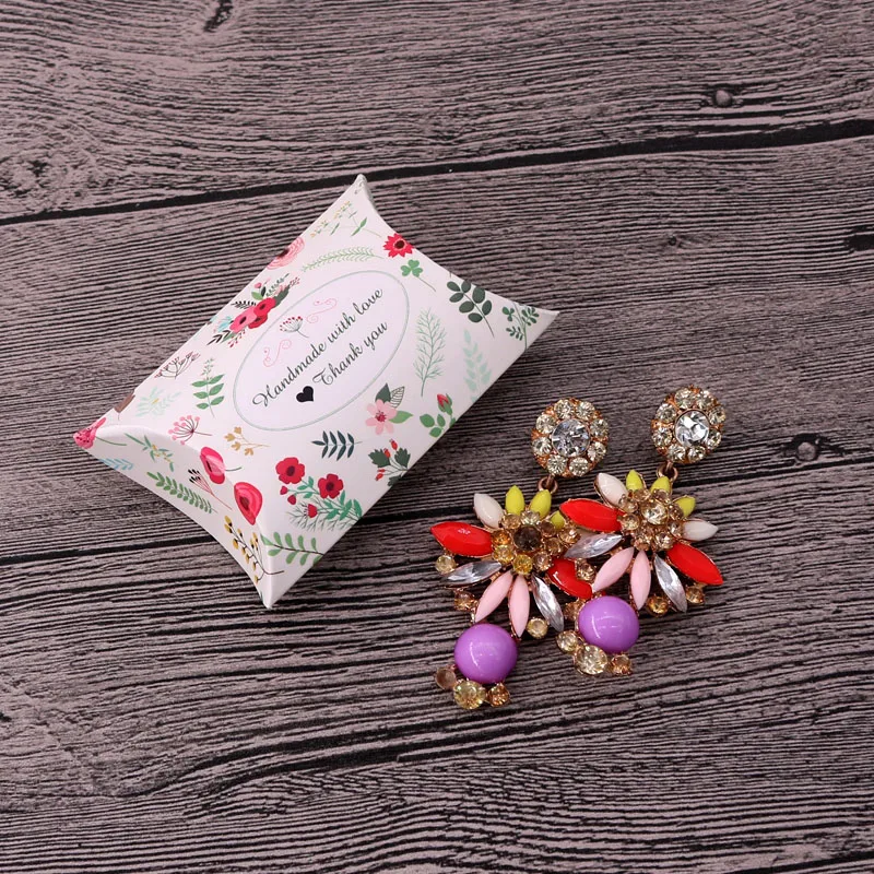 Коробка для ювелирных изделий с цветным цветочным принтом, 6,5x9x2,5 см, 10 шт.лот, ручная работа, конфеты, подарки, держатель для хранения браслета, Свадебные Вечерние
