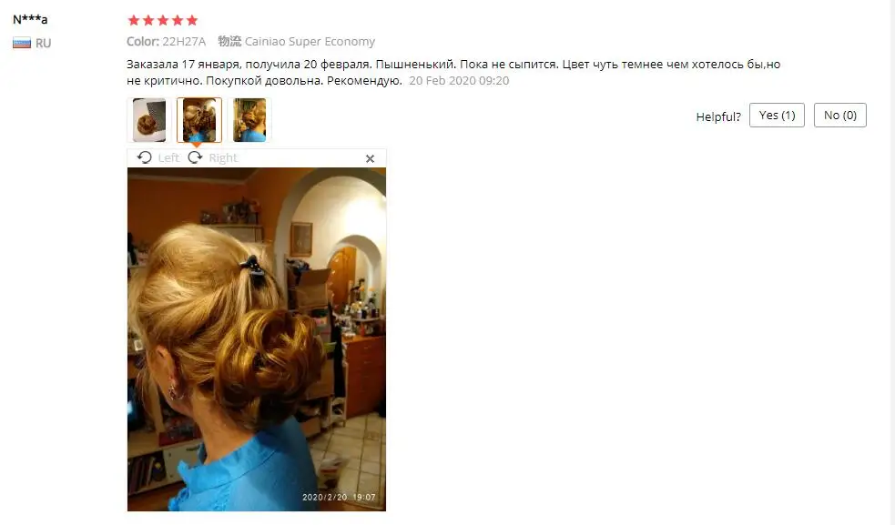 Товар пришёл очень быстро, через 16 дней! Отличный густой шиньон, цвет и структура волоса выглядят натурально. Покупкой довольна!!! Продавцу спасибо большое!