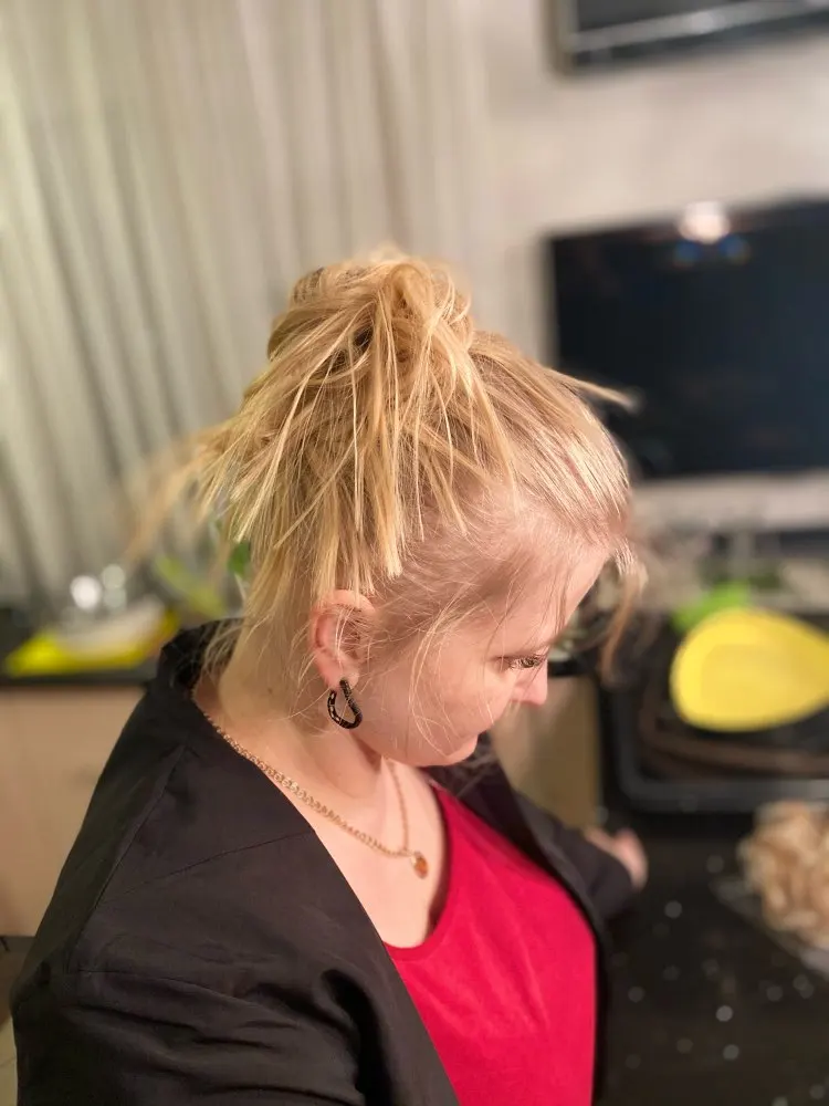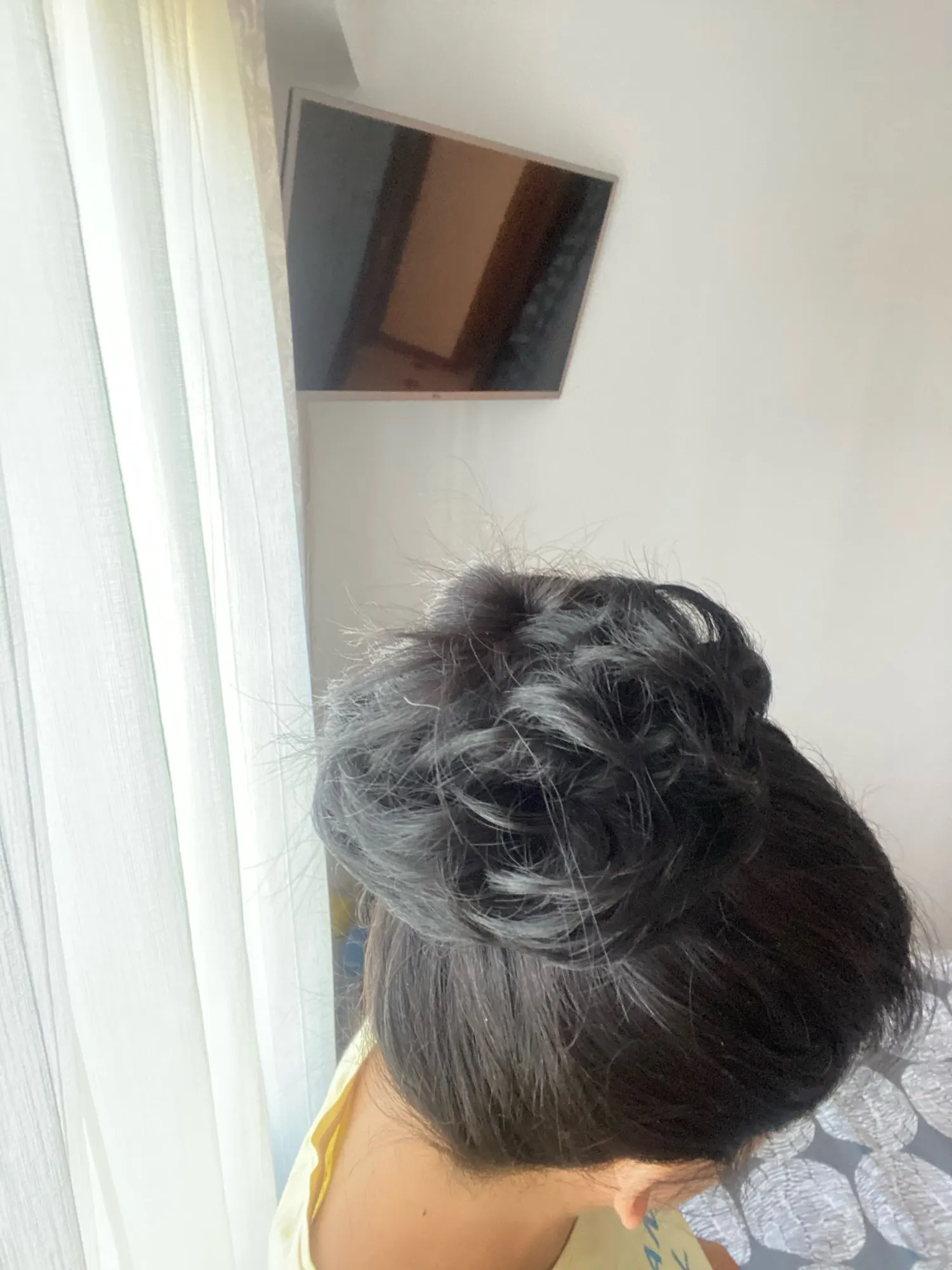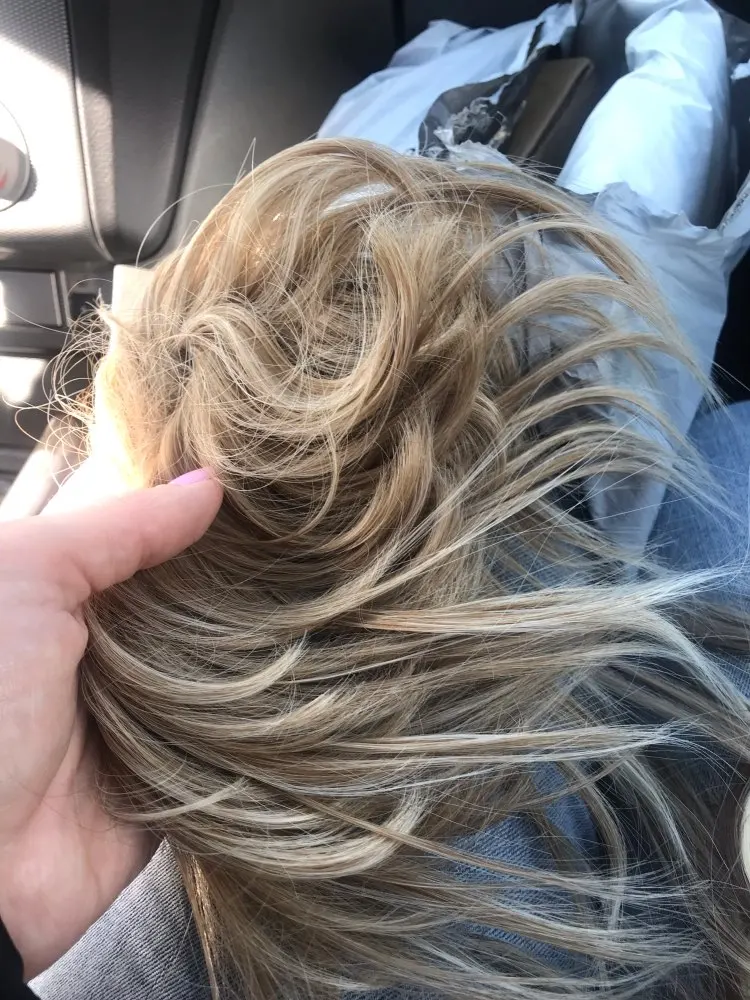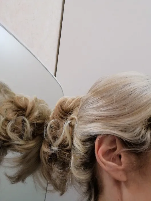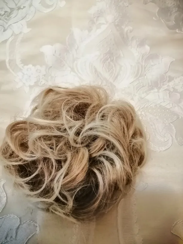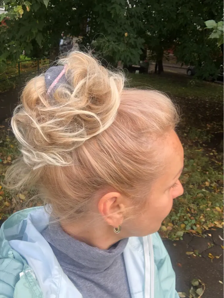 Цвет оказался немного темнее, чем мой жемчужный блонд. Требуется фиксация шпильками при активных движениях. Шиньон пришел за 10 дней до Екатеринбурга